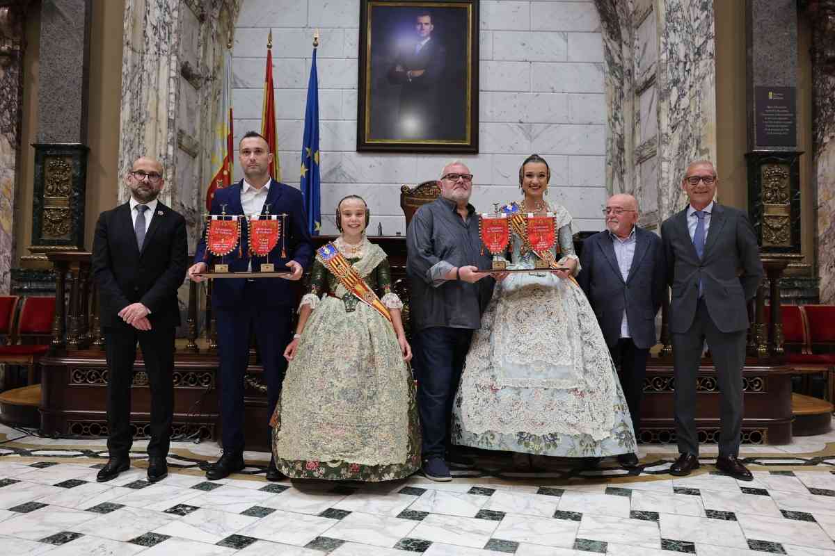 La gala fue presidida por las Falleras Mayores de Valencia, Berta Peiró y Lucía García, acompañadas por el presidente de JCF, Santiago Ballester, y el maestro mayor del Gremio de Artistas Falleros de Valencia, Vicente Julián García Pastor.