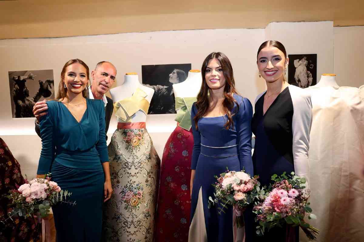 El primer traje corresponde a un estrecho de seda natural denominado “Julián”, un diseño floral de composición clásica y colorido vivo que evocaba elegancia y frescura. El dibujo está compuesto por un ramo central con diferentes tipos de flores y hojas que le dan un aspecto vibrante y dinámico al conjunto. Esta tela ha sido bautizado por la empresa textil con el nombre de Julián en recuerdo de Julián Carabantes, apasionado de la indumentaria tradicional y estrechamente vinculado a la firma.