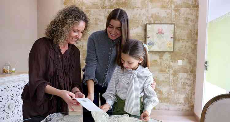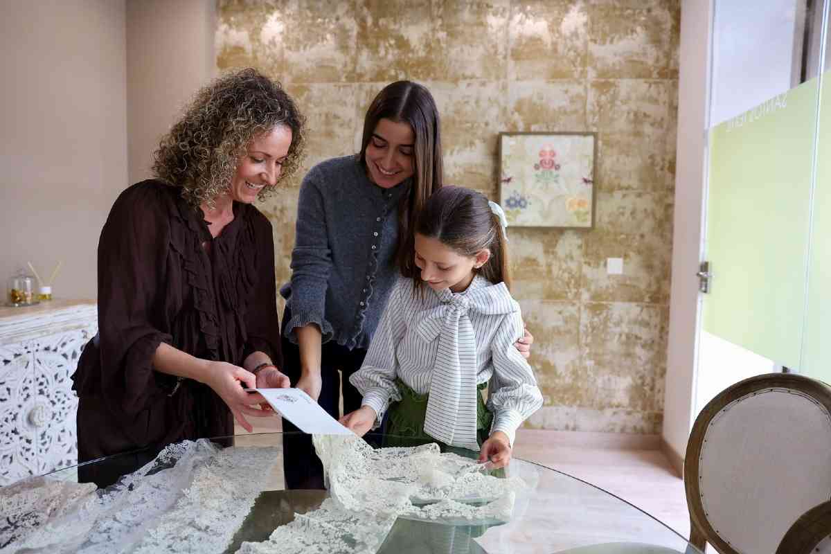 Míriam Santos, gerente de la firma Santos Textil, empresa fundada en 1970, afirma que es una gran responsabilidad y un tremendo orgullo formar parte del conjunto de profesionales que elaboran las piezas artesanas que visten durante su reinado las Falleras Mayores de Valencia, en este caso concreto las puntillas y las manteletas; joyas de la artesanía que se suman a la gran colección de diseños y productos que atesora Santos, empresa textil referente a nivel valenciano y nacional.