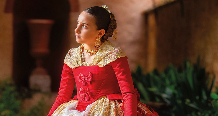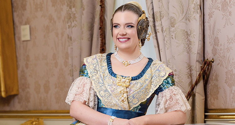 Ana Navalón, responsable de la firma Indumentaria Serrano i Navalon, es la encargada de vestir a Marina Berzal Serrano como fallera mayor de la comisión Ingeniero José Sirera-Pío IX, del sector La Creu Coberta.