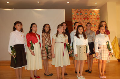 Los vestidos están confeccionados en rayón de 12 colores con el dibujo Almeza, exclusivo para la corte de honor infantil de Torrent 2009, en colores de fondos rosa, azul, amarillo, y naranja. Las manteletas están bordadas en oro sobre tul cristal y lentejuelas. Las medias están realizadas de modo artesanal y llevan bordadas la inicial de cada niña en crudo y oro. El corpiño de manga larga, de confección basada en el siglo XVIII, con manga de astral y bordados con oros e hilo al tono, está realizado con tela en raso liso con los mismos fondos que los trajes.