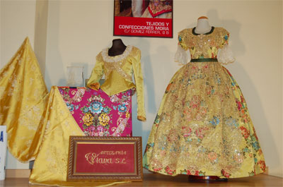 Los responsables de la confección han sido Indumentaria Valenciana Mora. La empresa torrentina, ha contado con la colaboración de firmas de primera línea en el sector de la indumentaria valenciana como son Vives y Mari para las telas, Artesanía Viana en las manteletas, y las medias de la mano de la artesana Elvira Bella.