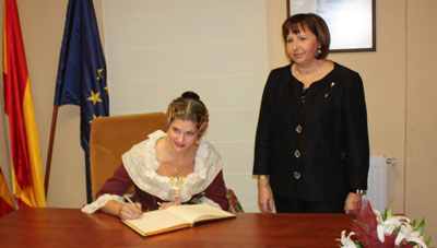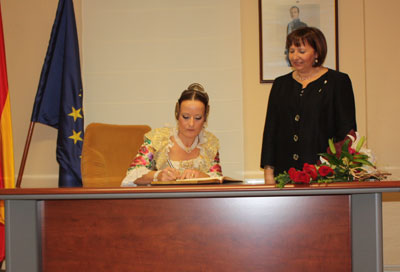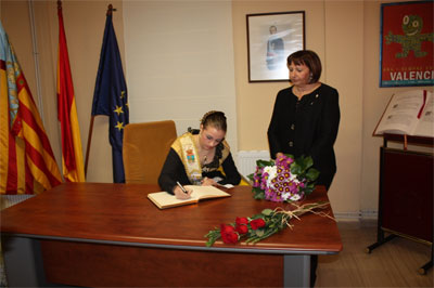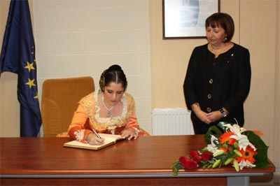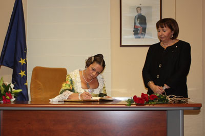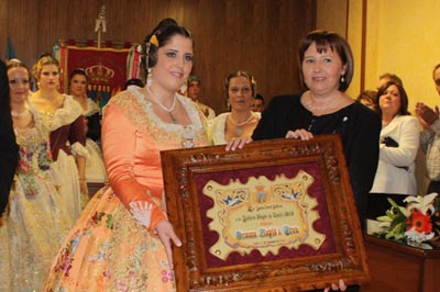 Una vez plasmada la firma para la posteridad, el salón de plenos acogió la entrega del diploma a cargo de la alcaldesa, Pilar Blasco, que acredita a Gemma Llopis Grau como Fallera Mayor de Turís de 2010.