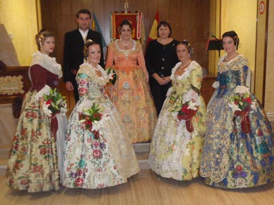 De momento el edificio consistorial abrió sus puertas para recibirla a ella y a su corte de honor, compuesta por Mar Cuenca Martínez, Mónica González García, Paula Pardo Cabo y Mª Dolores Grau Pardo, en una tarde extrañamente calurosa de noviembre en la que estuvieron arropadas por los máximos representantes entrantes y salientes de las cuatro comisiones del pueblo. También participó del acto la Reina de las Fiestas, la señorita Elena Estellés Lozano.