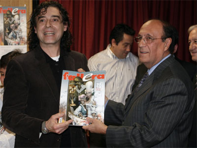 Las Falleras Mayores de Valencia y el concejal Crespo recibieron los primeros números de manos del director de la publicación. A continuación fueron los representantes de la falla anfitriona, Plaza del Pilar, Eva Van Heelvort Polo, Olga García Salguero, Manuel Alpuente Andrés y José Camany Ara, los que recibieron un ejemplar de la revista, pasando a continuación a la entrega del premio al Mejor Ninot de Portada, para lo que se solicitó la presencia del artista responsable del grupo ganador, "La flauta mágica", José Lafarga.