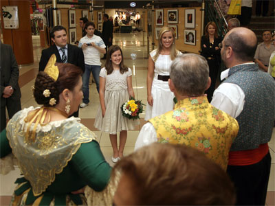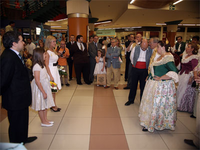 El jefe de Relaciones Públicas del centro comercial, David Mazcuñan, junto al director de Nuevo Centro, Alfredo Tell, acompañaron a las Falleras Mayores de Valencia 2008, Victoria Blázquez y Gloria Martínez, en un recorrido por las instalaciones del centro al son de los acordes de la Escola de Tabal i Dolçaina de J.C.F..