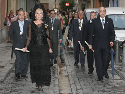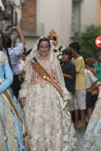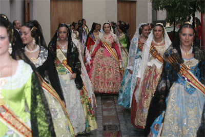 Las Falleras Mayores de Valencia, Victoria Blázquez y Gloria Martínez, acompañadas por sus respectivas Cortes de Honor, participaron en una procesión que abrían las danzas tradicionales y los "gegants" de Na Jordana, Carmeleta y Vicentico. Las máximas representantes de las comisiones del barrio del Carmen también tomaron parte en la comitiva, al igual que diversas autoridades e integrantes de directivas de otras fiestas y entidades, la Honorable Clavariesa de las fiestas vicentinas, los componentes de la Cofradía del Carmen y la Camarera de la Mare de Déu, Carmen Ferrés García-Insa.