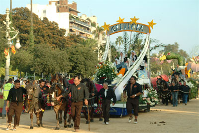 La tarde comenzaba pronto para sus dos elementos principales. Por una parte, los carroceros, que acudían con sus obras al punto de inicio después de que esa mañana el jurado ya hubiera visitado los obradores. Y por otra, las candidatas preseleccionadas, que se disponían a vivir uno de los momentos más esperados.