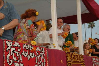 En la tribuna de autoridades también se echaba en falta la presencia de la alcaldesa, Rita Barberá, gran entusiasta de la Batalla de Flores, que se encontraba en Washington.