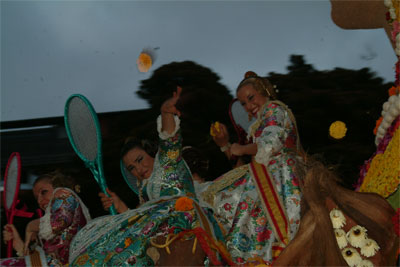 Con la segunda carcasa comenzaron las "hostilidades" entre público y tripulantes de las carrozas, entre las que hay que destacar a las Falleras Mayores de Valencia y las Cortes de Honor de 2007 y 2008; la Bellea del Foc d´Alcant y sus Damas; la Reina de las Fiestas de la Magdalena de Castellón; la Regina dels Jocs Florals y las representantes de las casas regionales y otros colectivos, además de, por supuesto, las preseleccionadas de 2009.