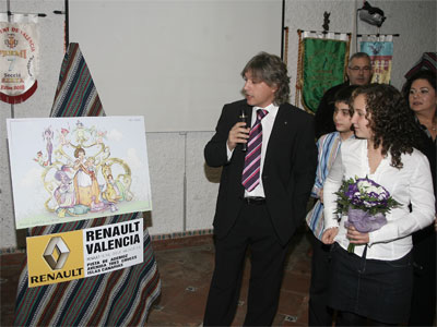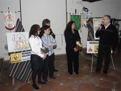 Los representantes oficiales del colectivo, Mª Carmen Rello Tamarit, Belén Alarcón Rodríguez, Carlos Latorre Montalbán y Juan José Galve, presidieron un acto en el que el artista de Burriana desveló sus cartas para el presente año.