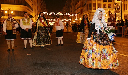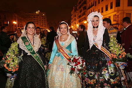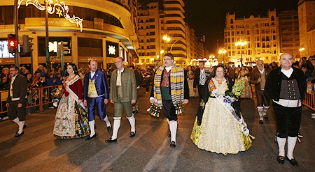 Al igual en la jornada del día martes 17, esta noche también quisieron estar presentes las cinco últimas Falleras Mayores de Valencia correspondientes a los años 2004-2008: Noelia Soria, Gueguel Massmanian, Lucía Gil, Marta Reglero y Gloria Martínez, que precedían a la comitiva oficial de la Junta Central Fallera.