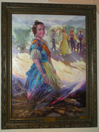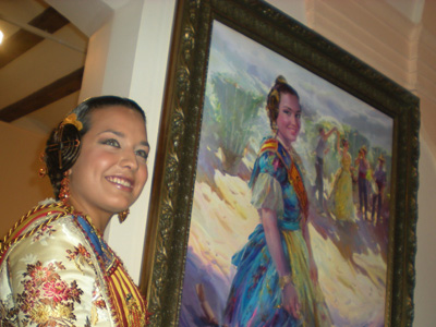Marta Agustín ha sido retratada en este cuadro como una musa del fuego, elemento característico de la fiesta.