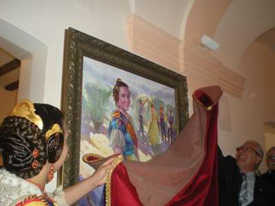 Tras la entrega de los ninots, la acción pasó a las galerías del museo, donde Marta Agustín descubrió el retrato que de ella ha realizado el pintor Conrado Meseguer.