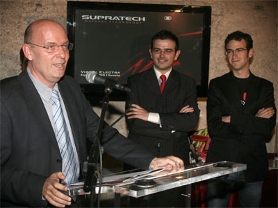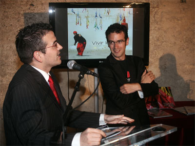 Juancar Casas y Rubén Gala, trabajadores de una empresa pirotécnica llamada "Pepe-tardo", fueron también presentados ayer tarde y regalados a las máximas representantes de la fiesta.
