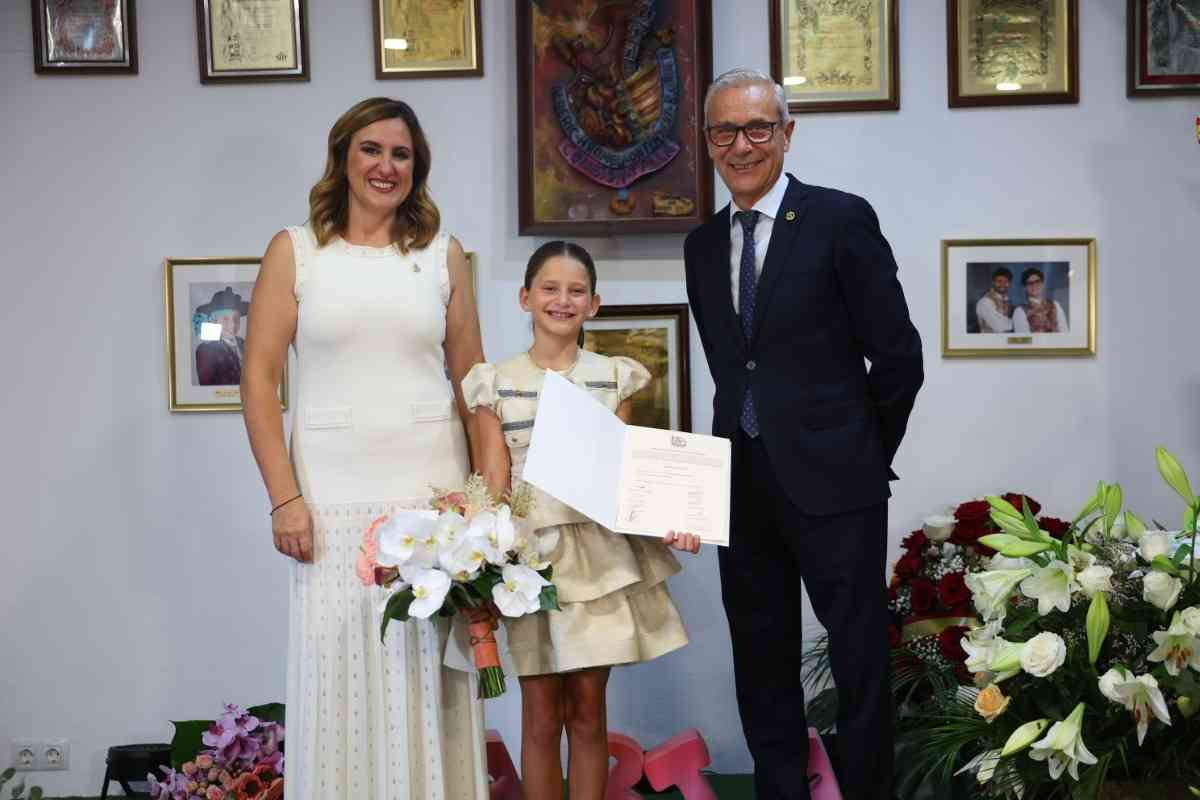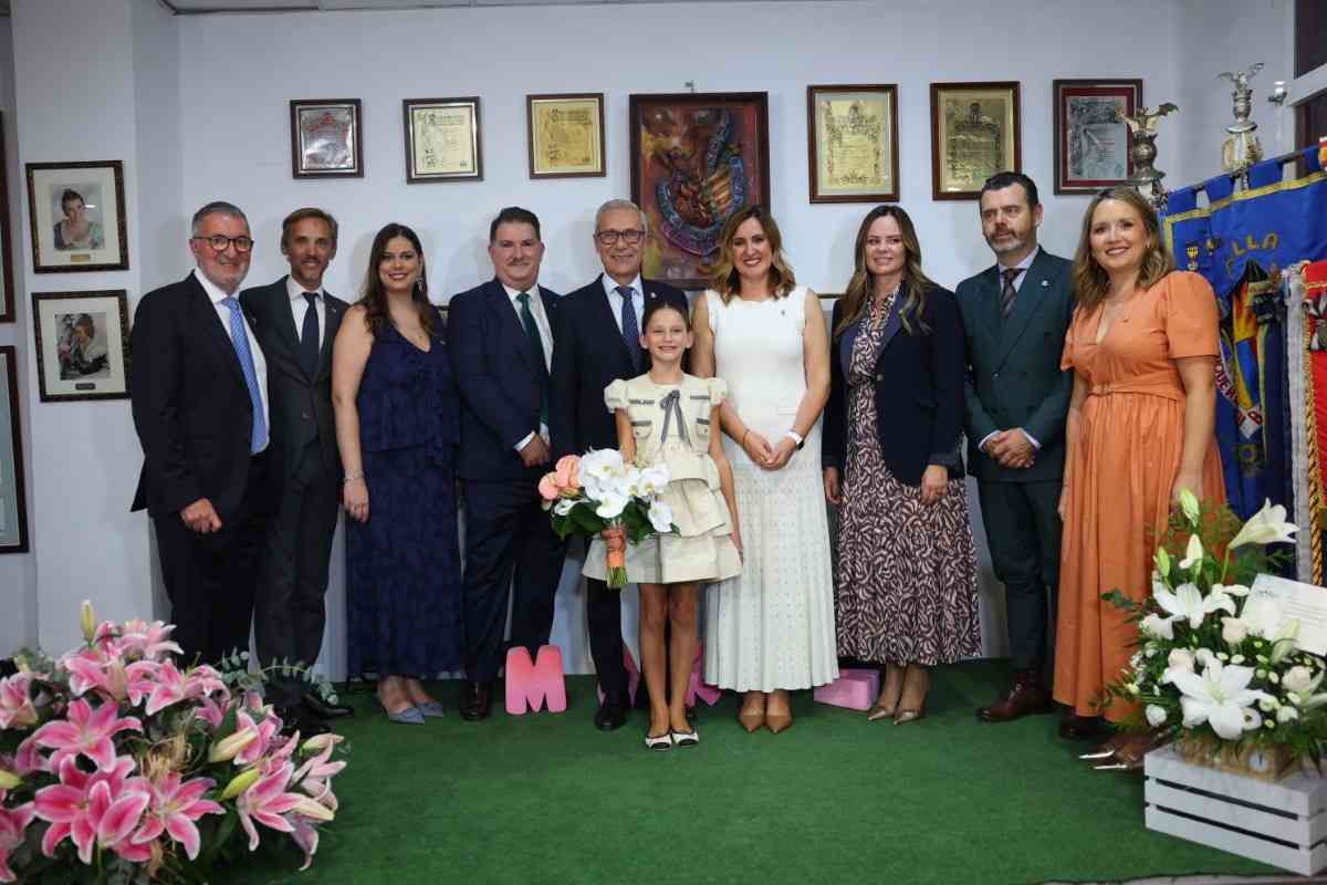 Las visitas no cesaron en toda la tarde, como tampoco la expectación en la calle y la llegada de centros florales. Recibió en el casal a su jurado, a su Corte de Honor y, cómo no, a Lucía García y su Corte, simbolizando el relevo de 2025 y 2026.