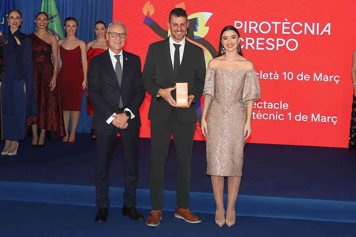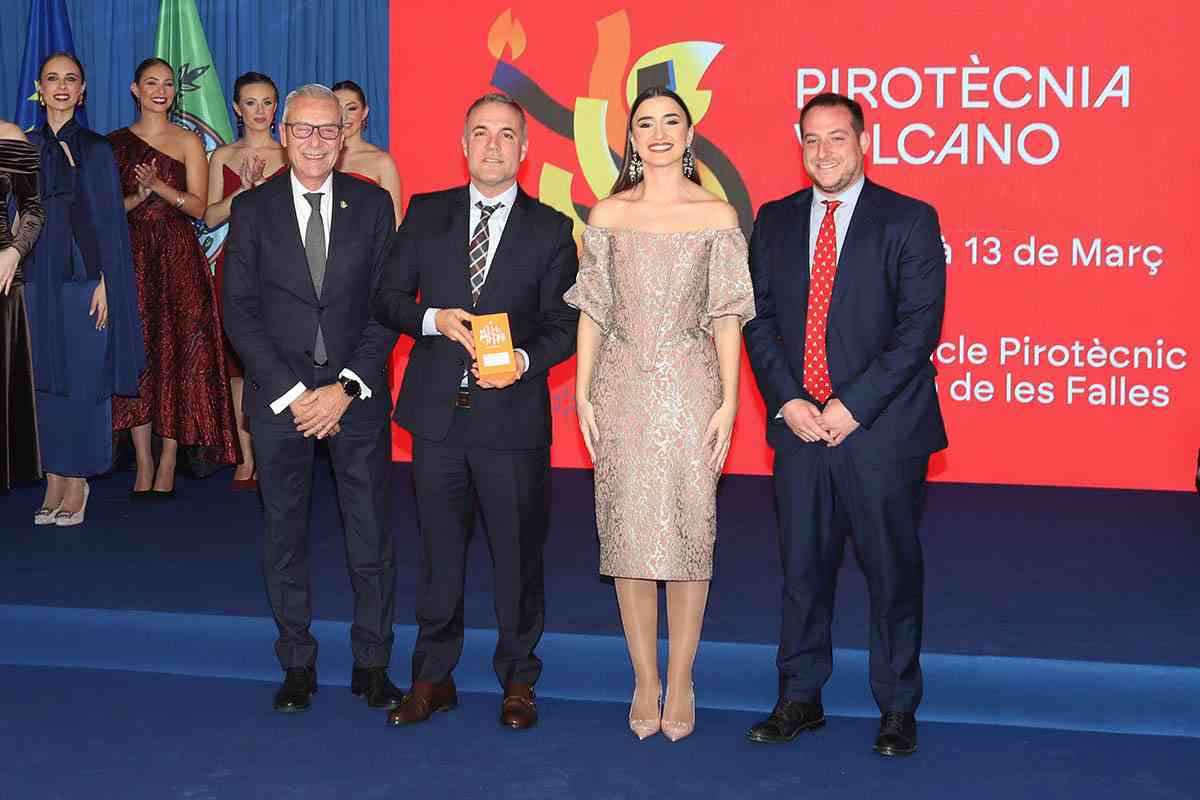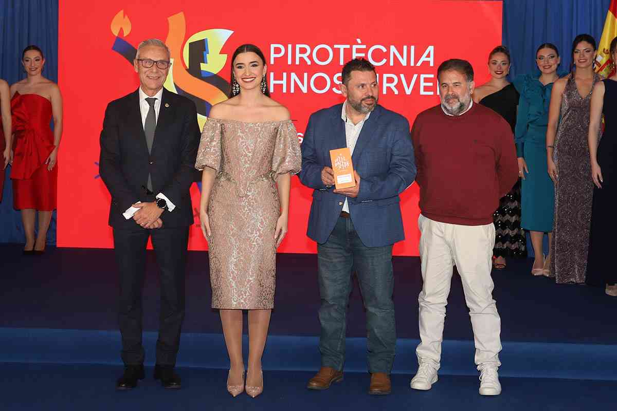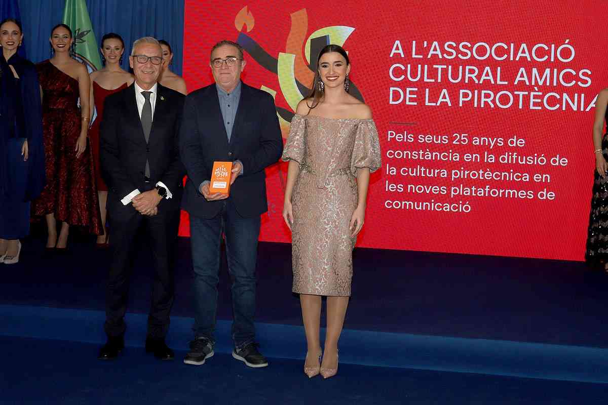 En la gala, como es habitual, se ha distinguido a personas, empresas e instituciones que contribuyen a que la pirotecnia sea valorada como parte esencial de nuestra fiesta, todo un emblema de cultura y tradición. Este año, los reconocimientos han sido para la Asociación Cultural Amigos de la Pirotecnia por sus 25 años de constancia en la difusión de la cultura pirotécnica en las nuevas plataformas de comunicación. También para Cervezas Turia por su compromiso en la continuidad de los grandes espectáculos pirotécnicos. Y junto a ellos, un reconocimiento muy importante a título individual para Núria Martí Botella por toda una vida dedicada al arte de la pirotecnia.