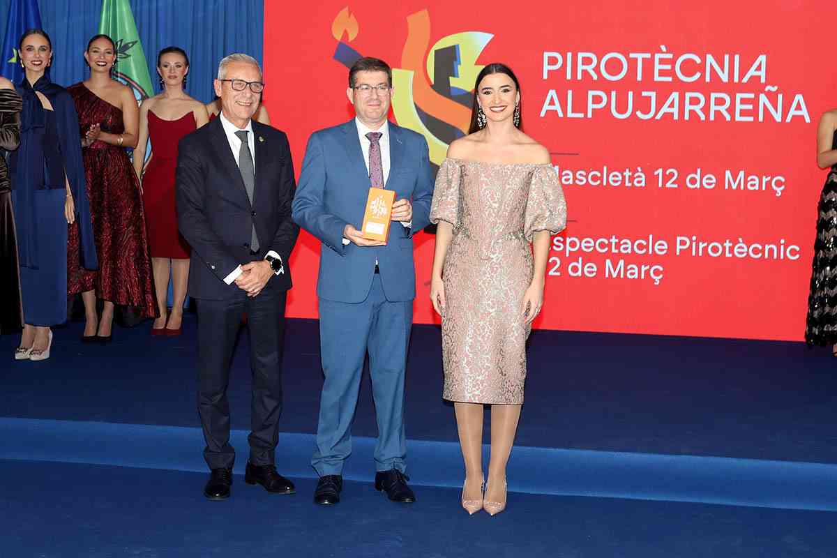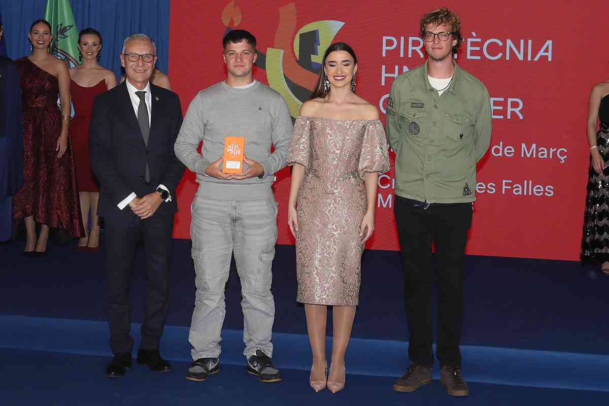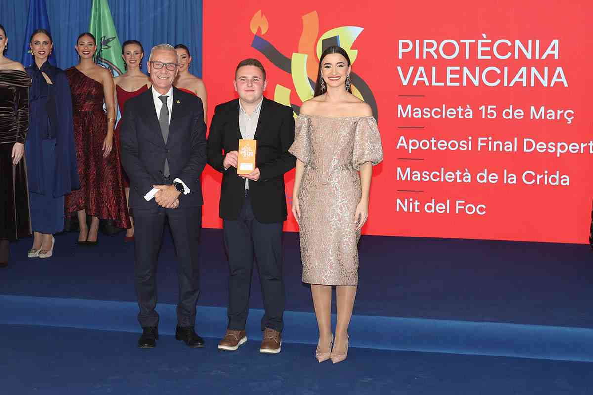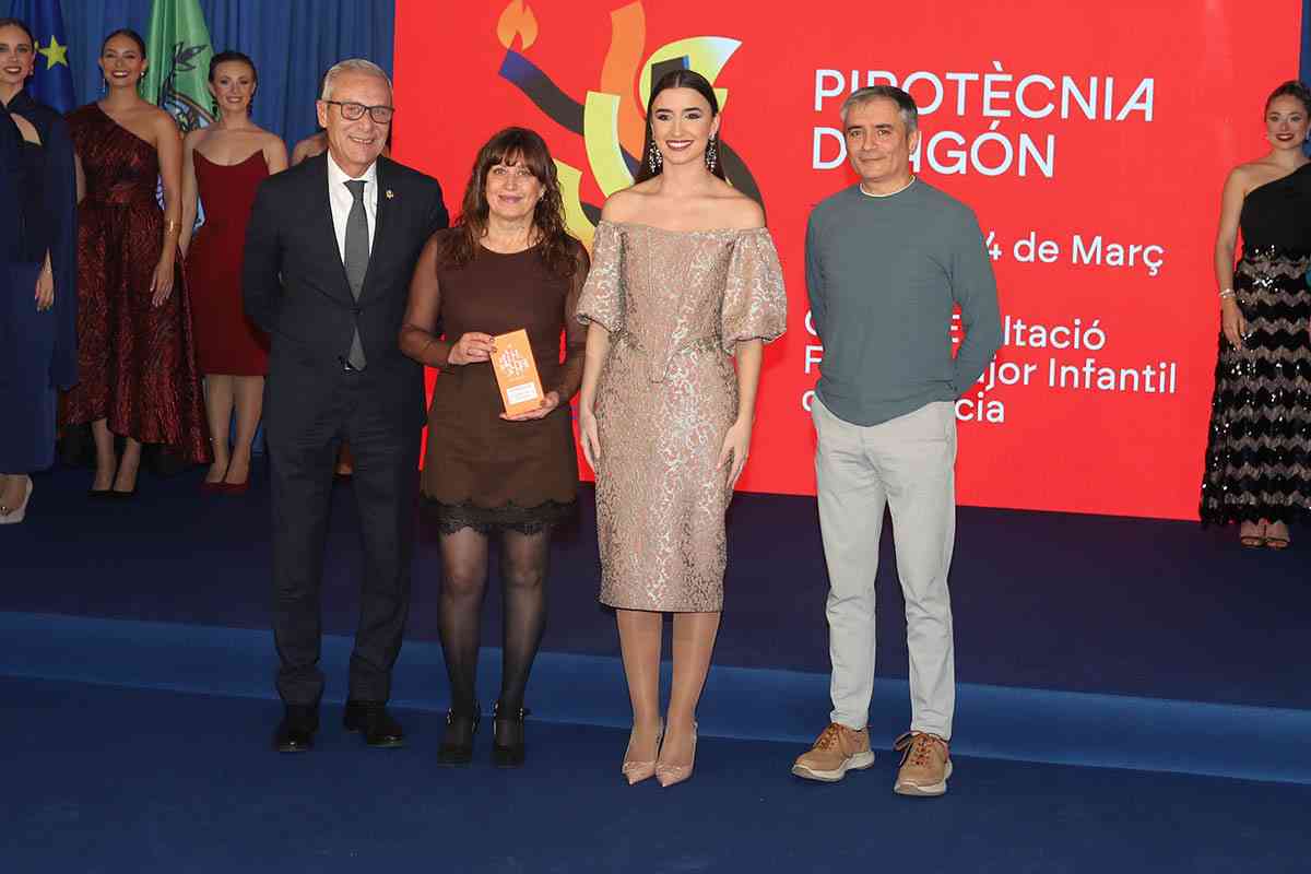 En la gala, como es habitual, se ha distinguido a personas, empresas e instituciones que contribuyen a que la pirotecnia sea valorada como parte esencial de nuestra fiesta, todo un emblema de cultura y tradición. Este año, los reconocimientos han sido para la Asociación Cultural Amigos de la Pirotecnia por sus 25 años de constancia en la difusión de la cultura pirotécnica en las nuevas plataformas de comunicación. También para Cervezas Turia por su compromiso en la continuidad de los grandes espectáculos pirotécnicos. Y junto a ellos, un reconocimiento muy importante a título individual para Núria Martí Botella por toda una vida dedicada al arte de la pirotecnia.