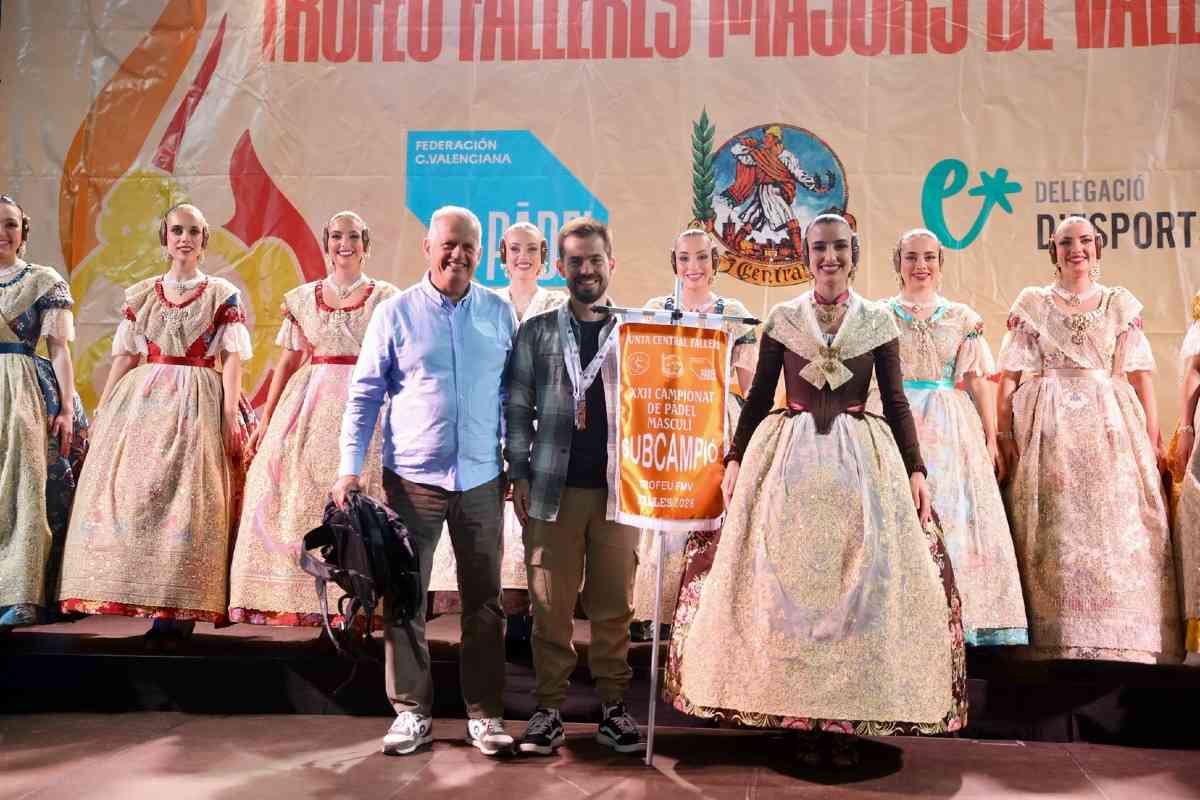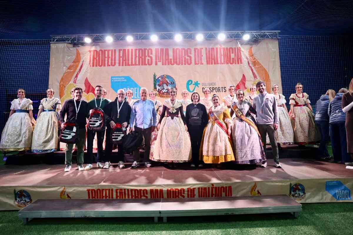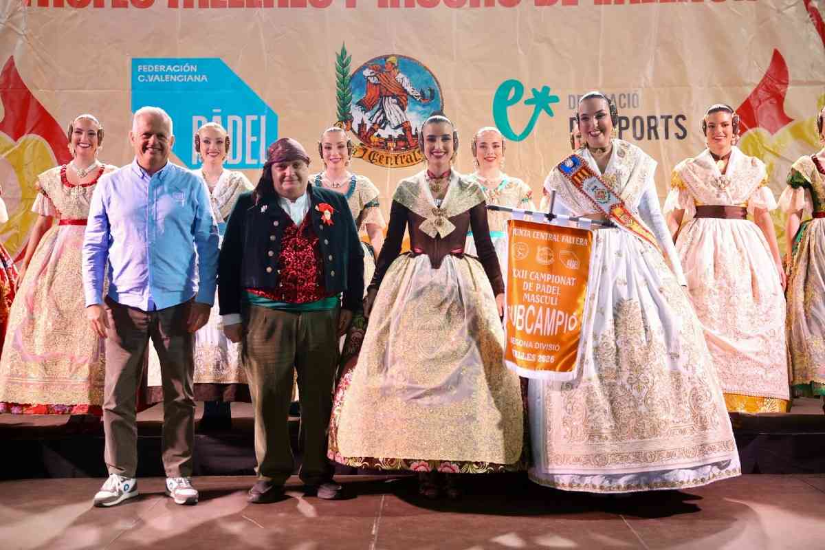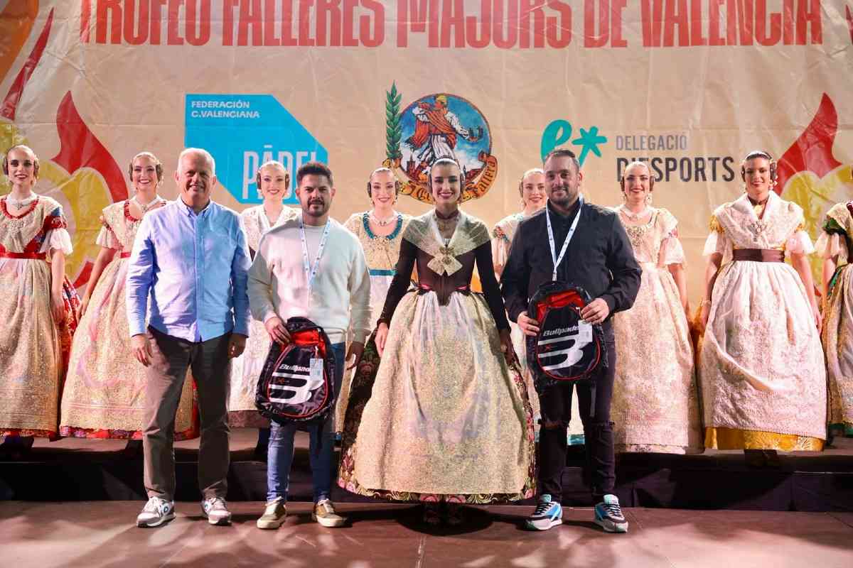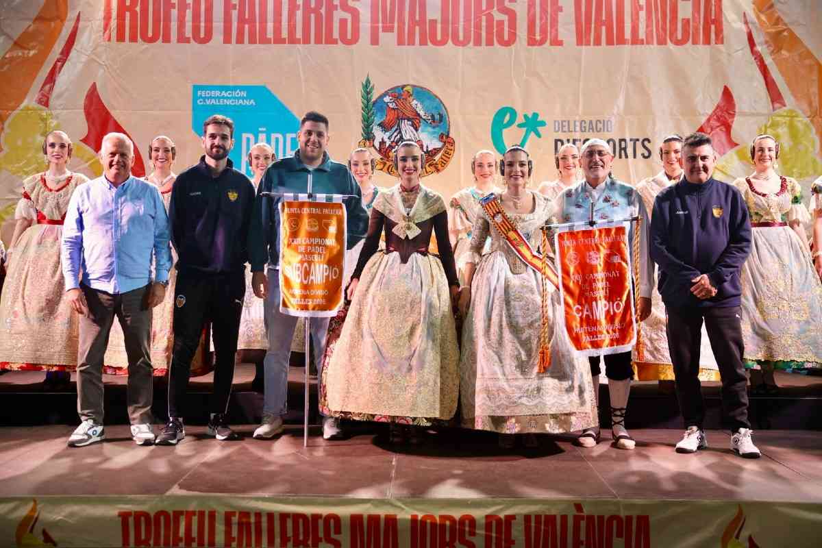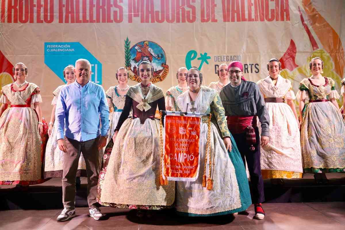 En el plano competitivo, la comisión de Convento Jerusalén-Matemático Marzal se alzó con la victoria en la categoría femenina, mientras que los jugadores de Ramiro de Maeztu-Humanista Furió hicieron lo propio en la masculina. La jornada culminó con la entrega de trofeos presidida por la Fallera Mayor de Valencia y su Corte de Honor, quienes repartieron los galardones a los representantes de las numerosas comisiones participantes en el campeonato de pádel fallero de este año.