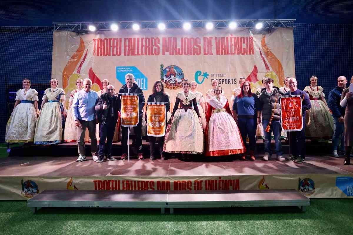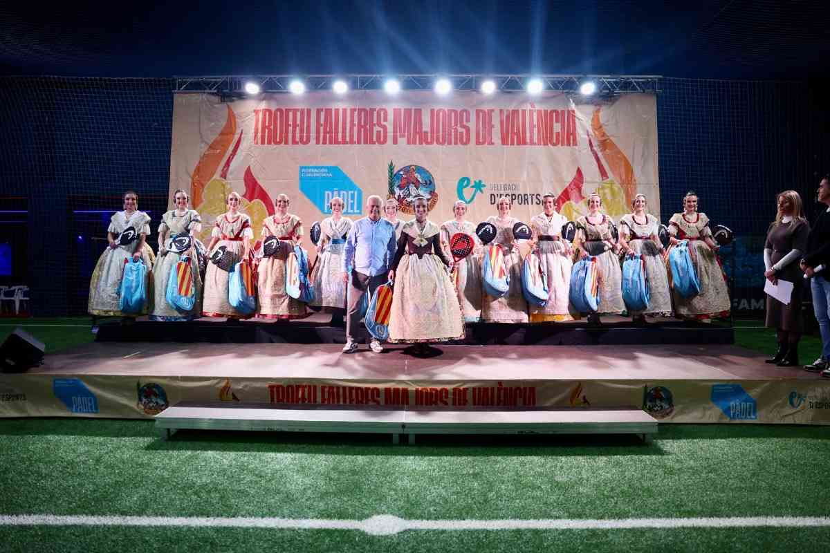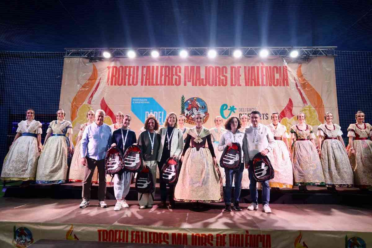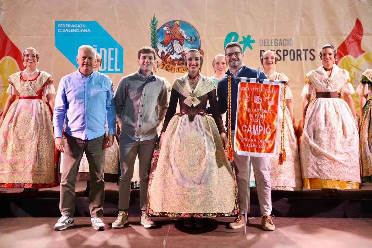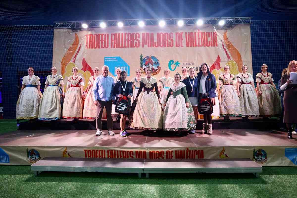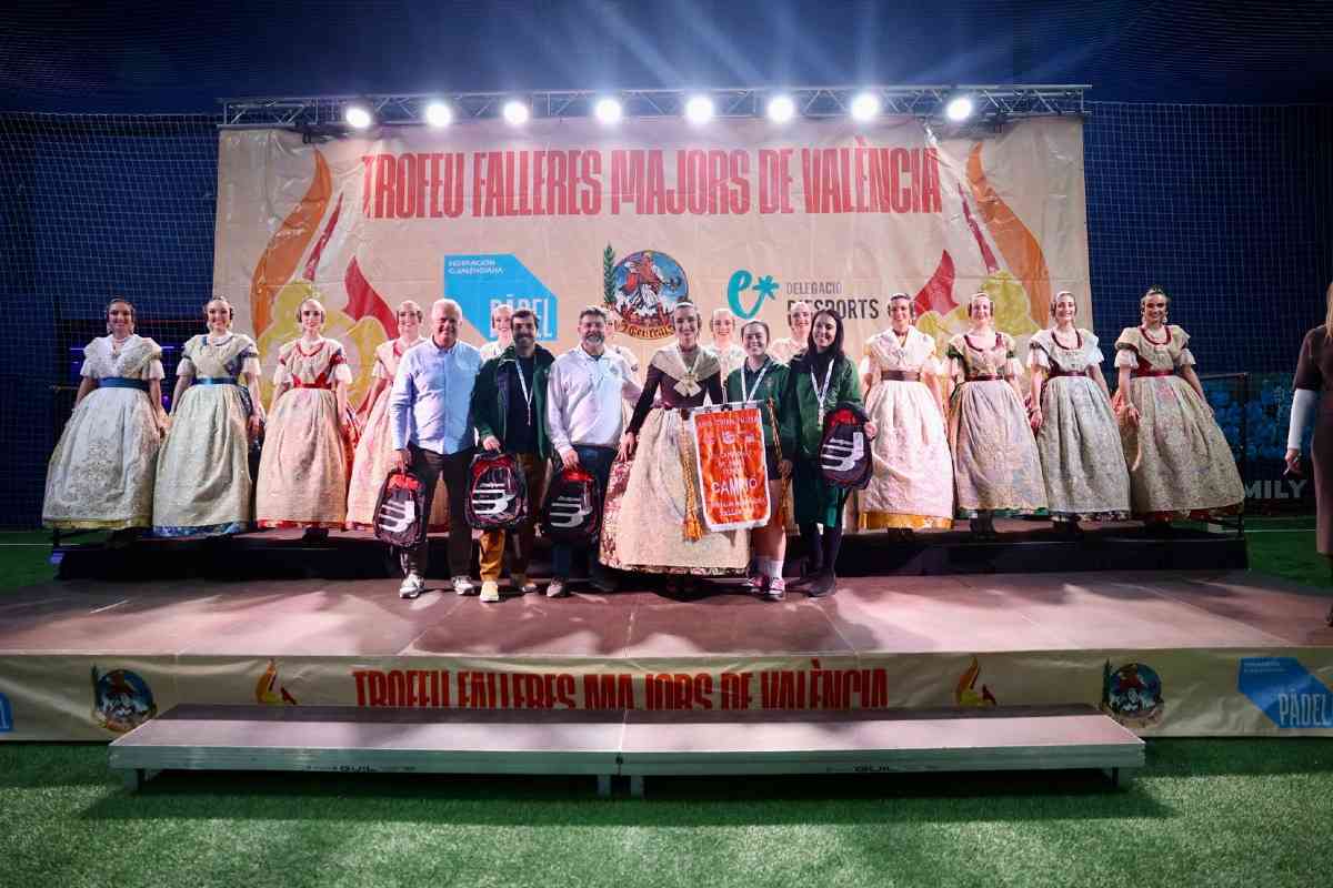 En el plano competitivo, la comisión de Convento Jerusalén-Matemático Marzal se alzó con la victoria en la categoría femenina, mientras que los jugadores de Ramiro de Maeztu-Humanista Furió hicieron lo propio en la masculina. La jornada culminó con la entrega de trofeos presidida por la Fallera Mayor de Valencia y su Corte de Honor, quienes repartieron los galardones a los representantes de las numerosas comisiones participantes en el campeonato de pádel fallero de este año.