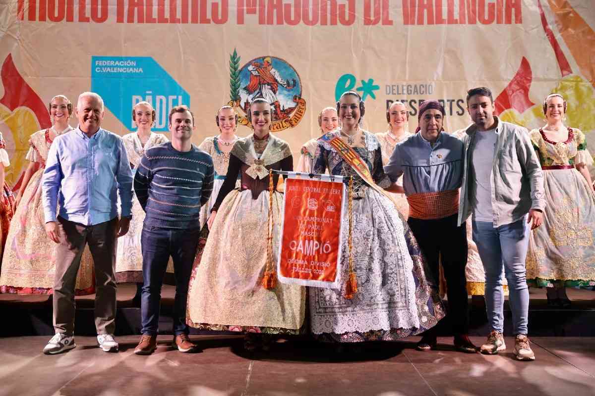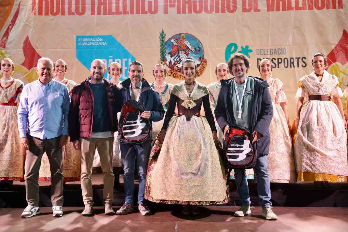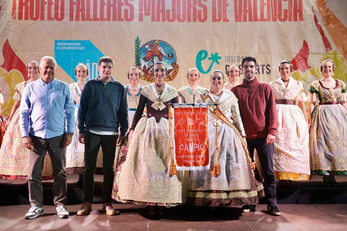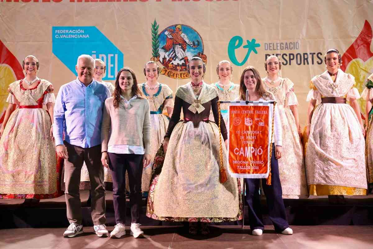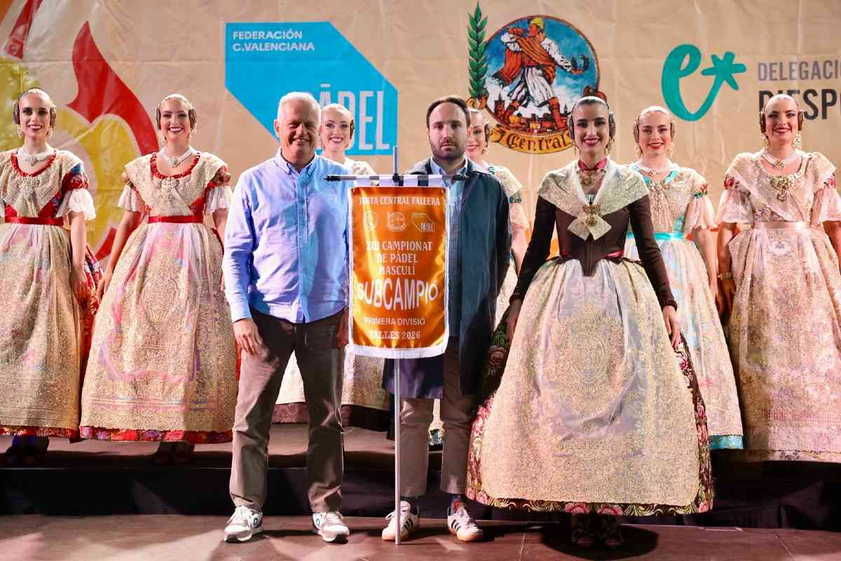 En el plano competitivo, la comisión de Convento Jerusalén-Matemático Marzal se alzó con la victoria en la categoría femenina, mientras que los jugadores de Ramiro de Maeztu-Humanista Furió hicieron lo propio en la masculina. La jornada culminó con la entrega de trofeos presidida por la Fallera Mayor de Valencia y su Corte de Honor, quienes repartieron los galardones a los representantes de las numerosas comisiones participantes en el campeonato de pádel fallero de este año.