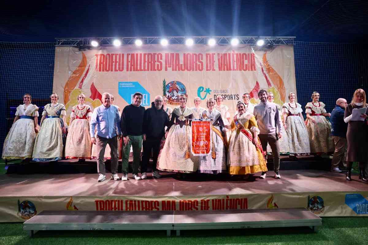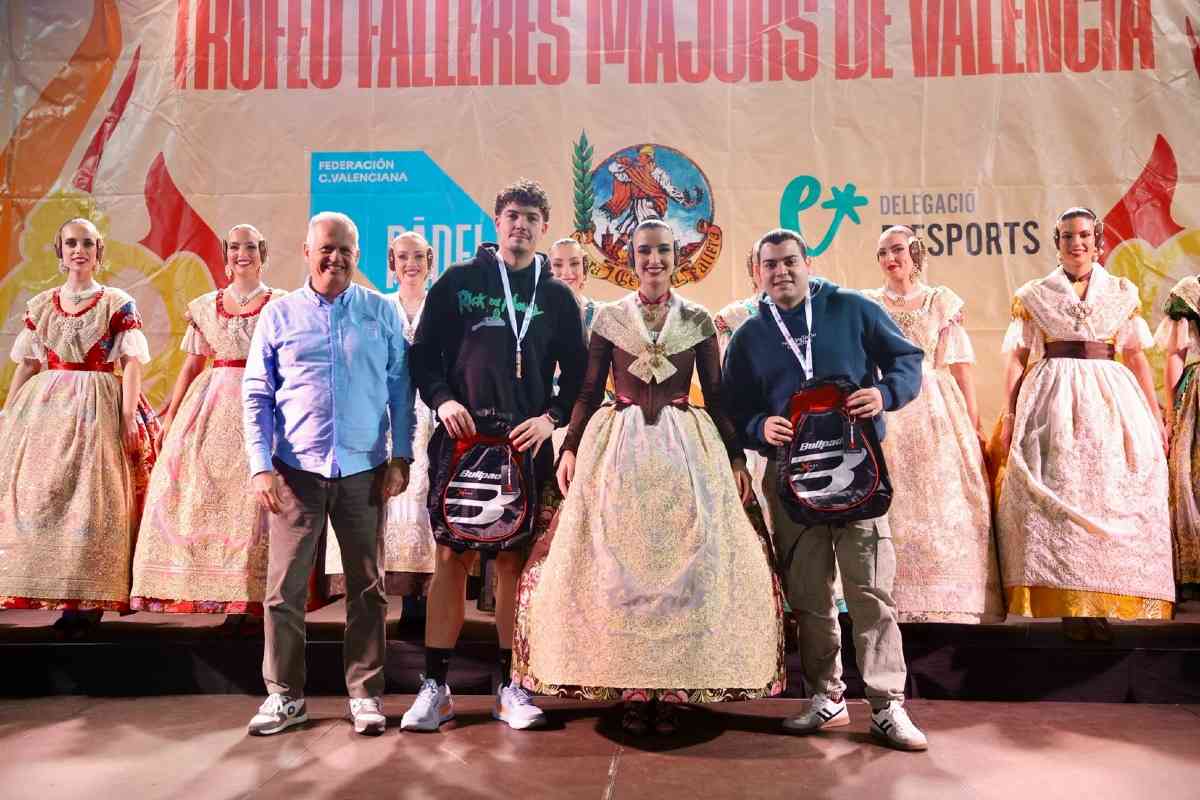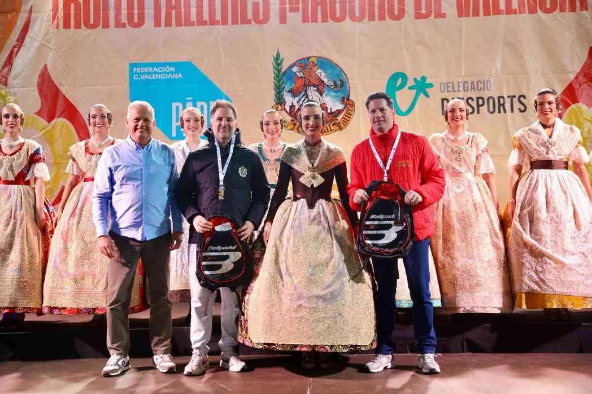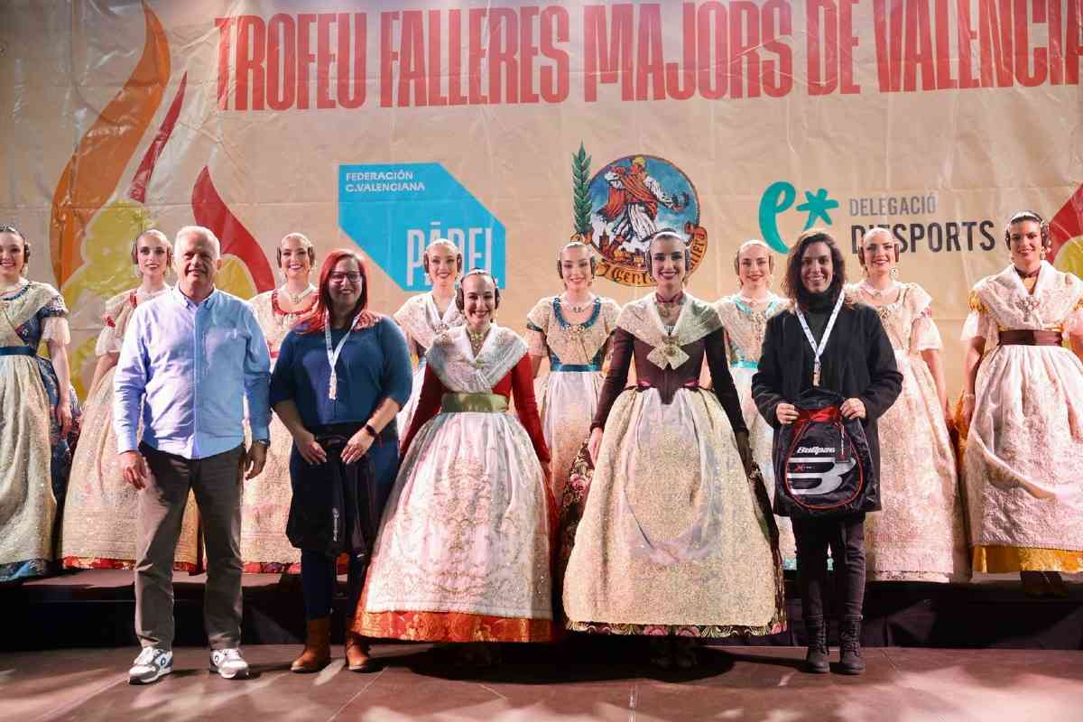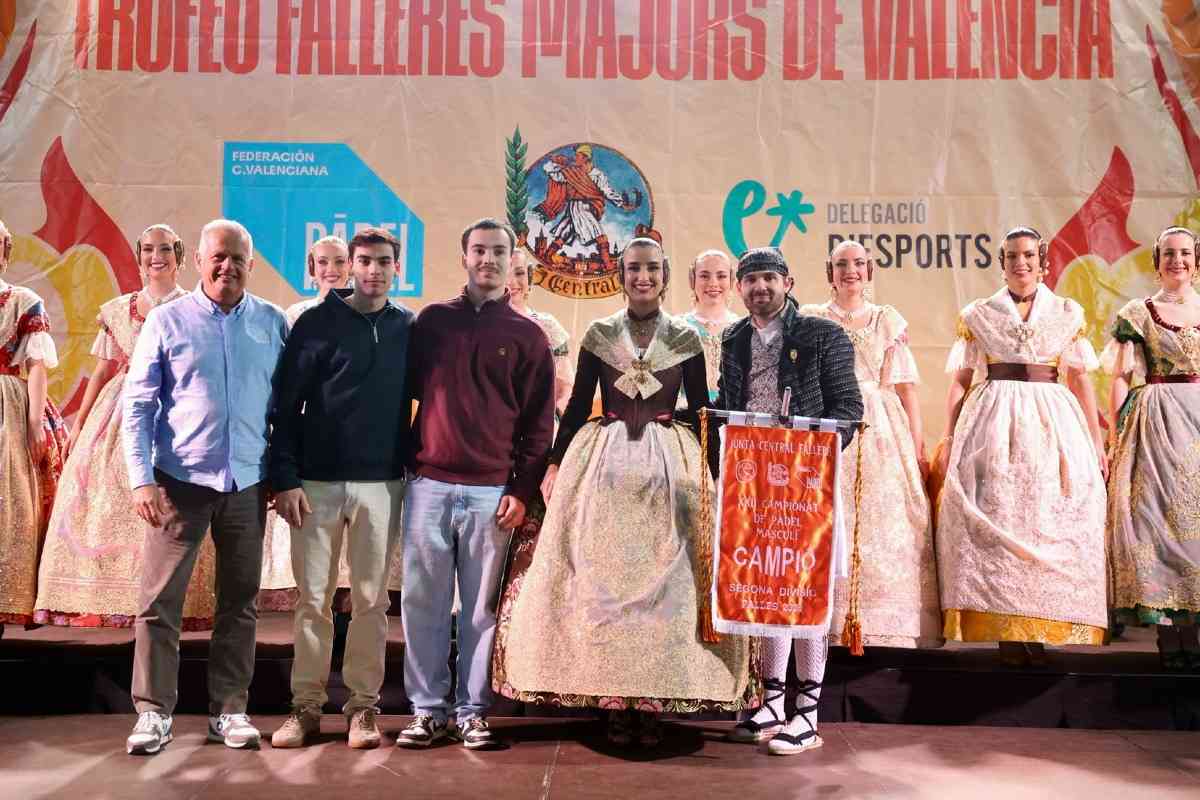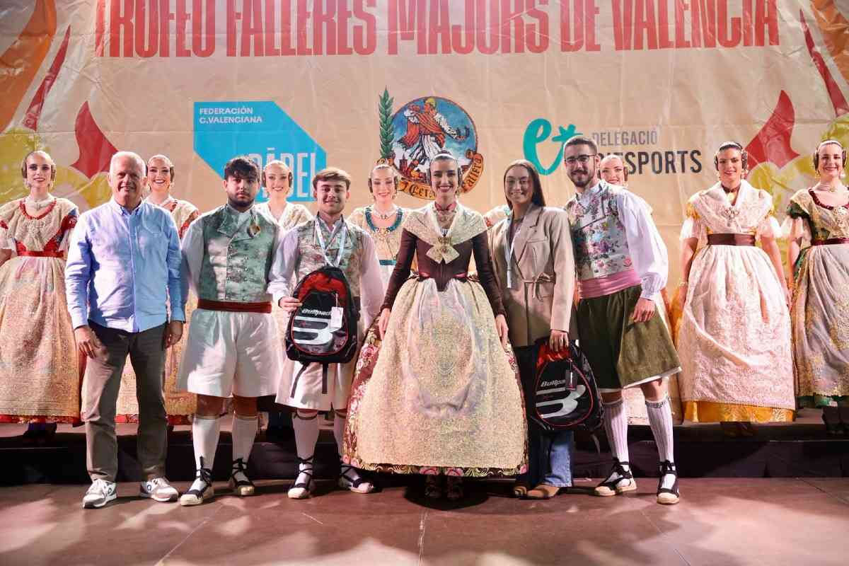 En el plano competitivo, la comisión de Convento Jerusalén-Matemático Marzal se alzó con la victoria en la categoría femenina, mientras que los jugadores de Ramiro de Maeztu-Humanista Furió hicieron lo propio en la masculina. La jornada culminó con la entrega de trofeos presidida por la Fallera Mayor de Valencia y su Corte de Honor, quienes repartieron los galardones a los representantes de las numerosas comisiones participantes en el campeonato de pádel fallero de este año.