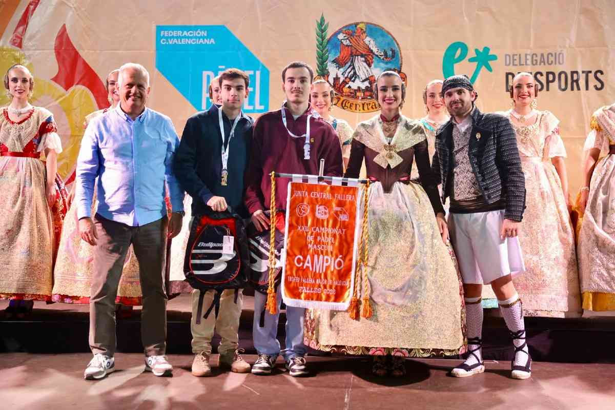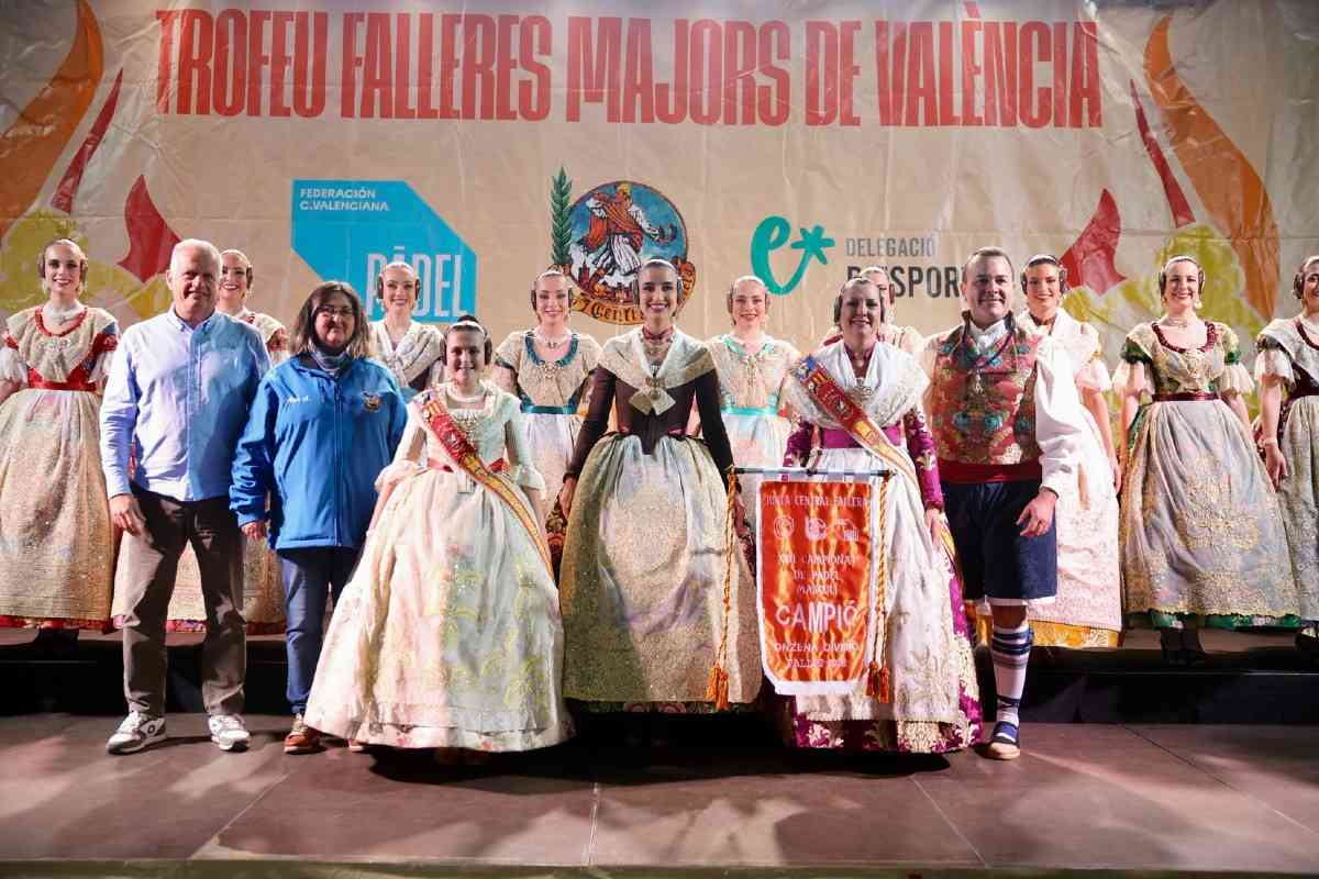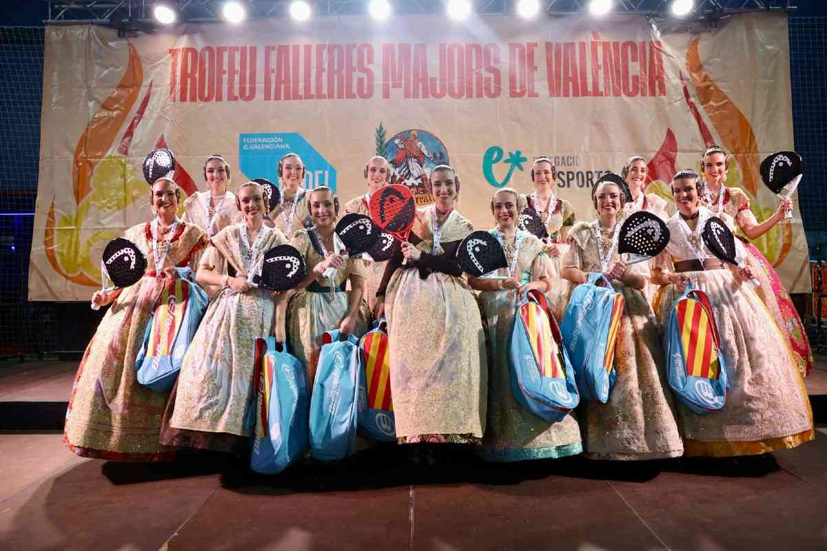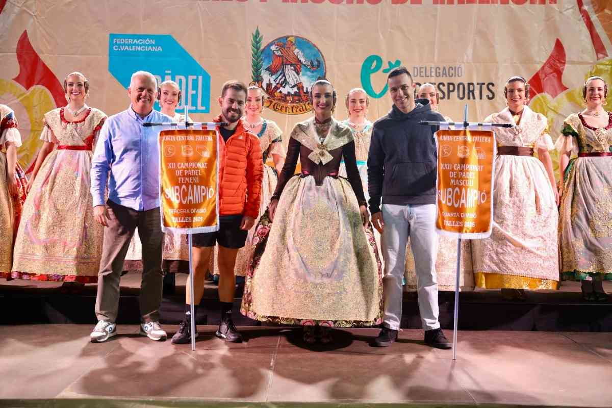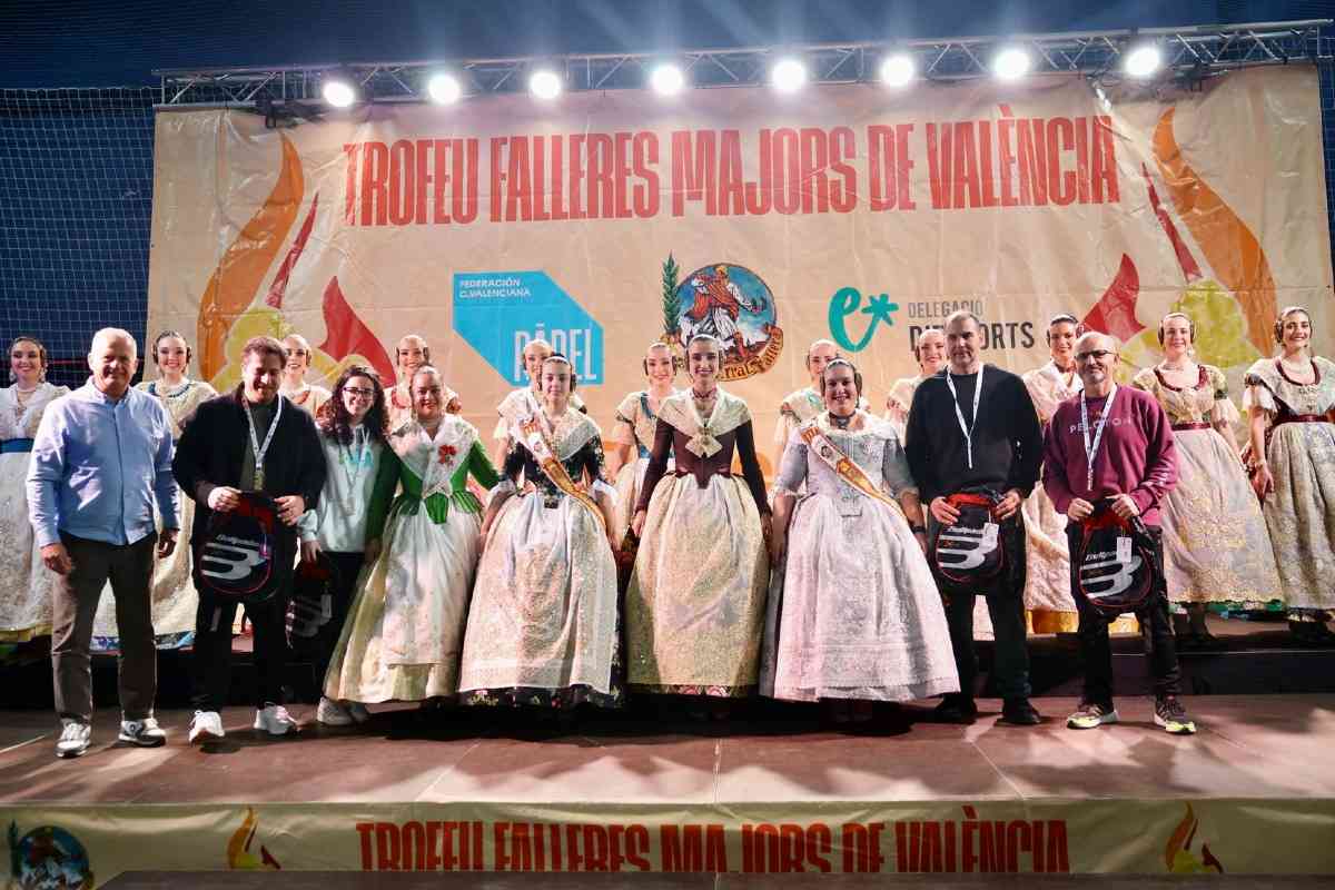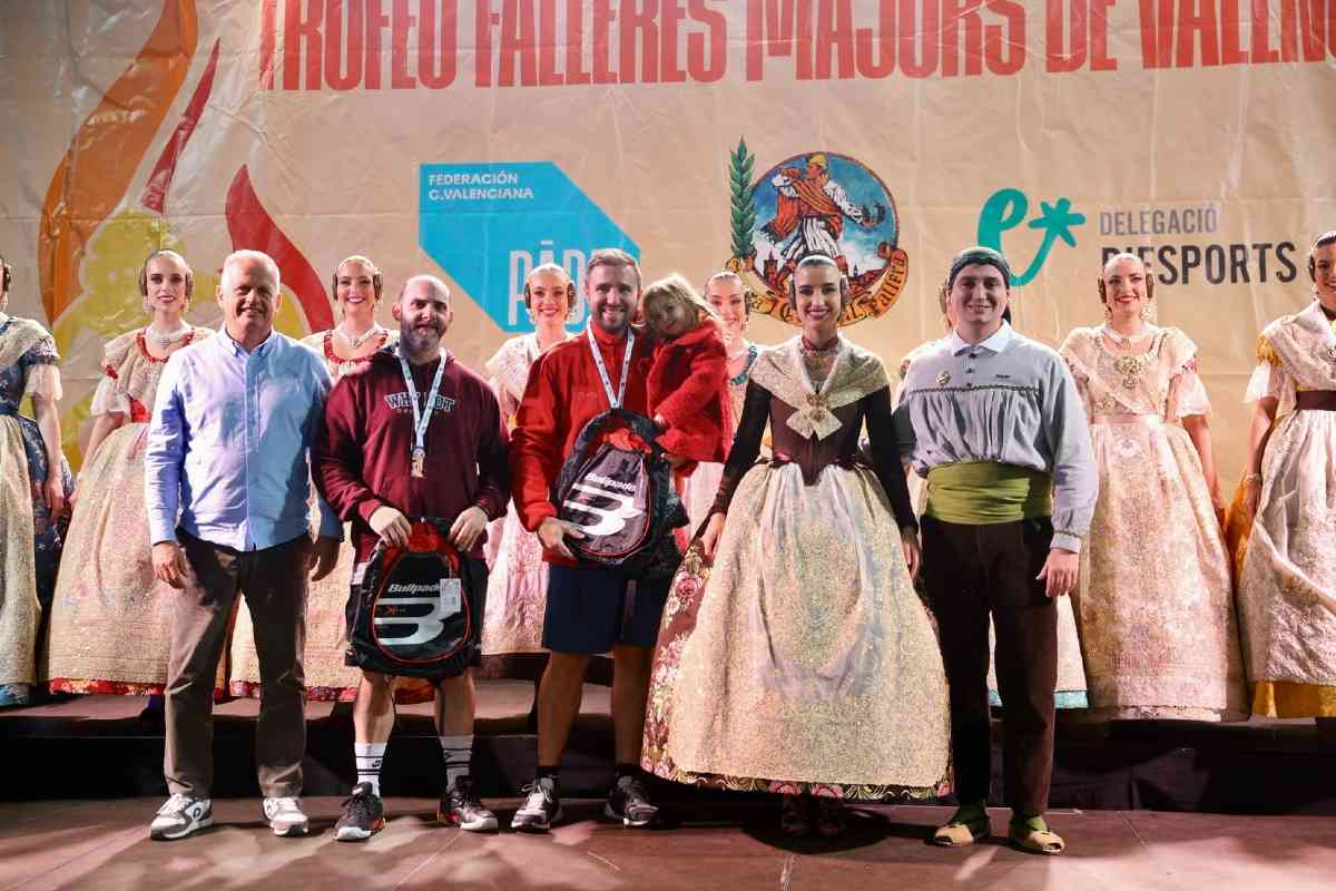 En el plano competitivo, la comisión de Convento Jerusalén-Matemático Marzal se alzó con la victoria en la categoría femenina, mientras que los jugadores de Ramiro de Maeztu-Humanista Furió hicieron lo propio en la masculina. La jornada culminó con la entrega de trofeos presidida por la Fallera Mayor de Valencia y su Corte de Honor, quienes repartieron los galardones a los representantes de las numerosas comisiones participantes en el campeonato de pádel fallero de este año.