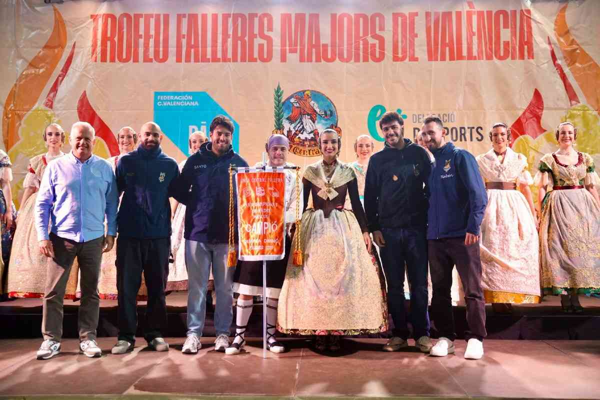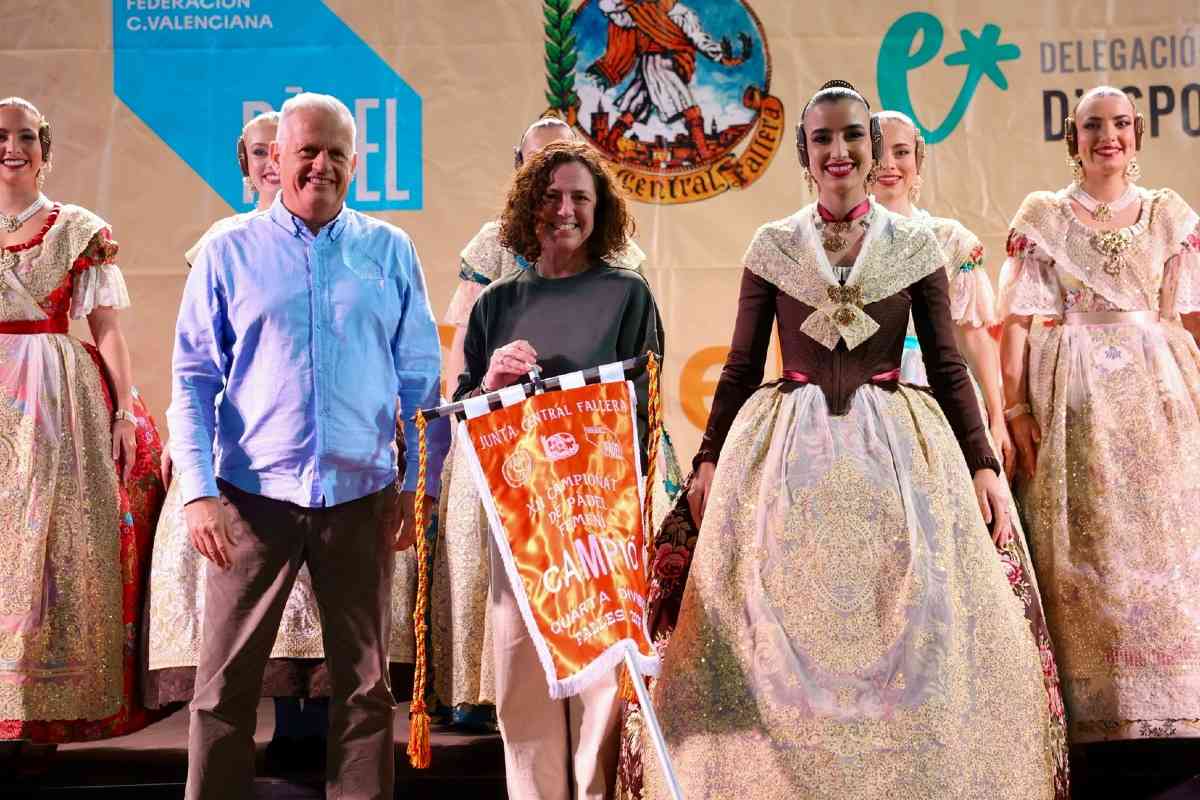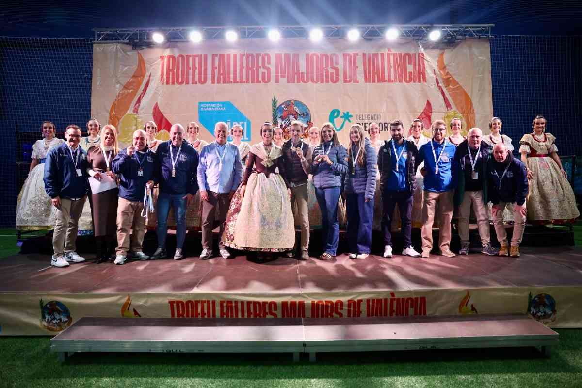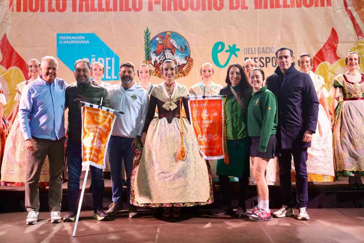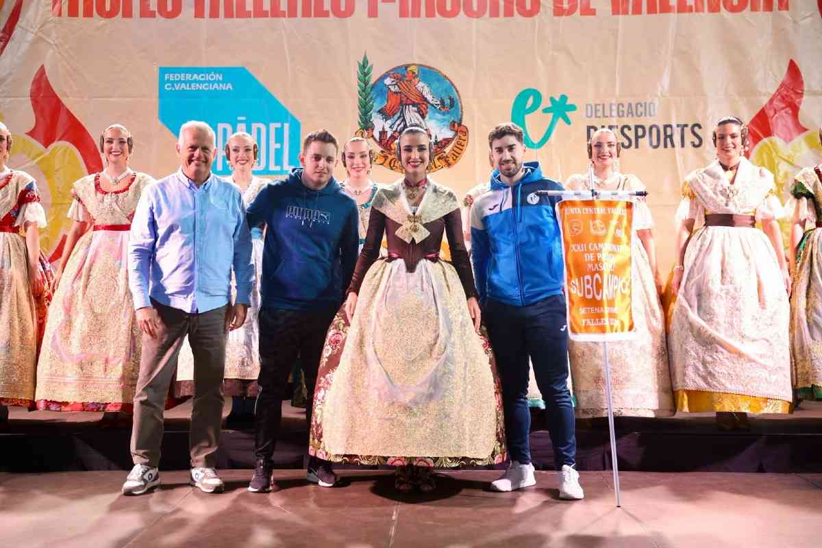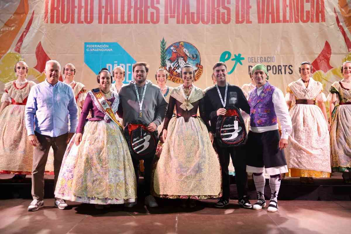 En el plano competitivo, la comisión de Convento Jerusalén-Matemático Marzal se alzó con la victoria en la categoría femenina, mientras que los jugadores de Ramiro de Maeztu-Humanista Furió hicieron lo propio en la masculina. La jornada culminó con la entrega de trofeos presidida por la Fallera Mayor de Valencia y su Corte de Honor, quienes repartieron los galardones a los representantes de las numerosas comisiones participantes en el campeonato de pádel fallero de este año.