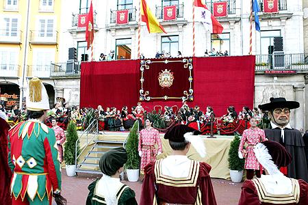 Una vez proclamadas, las Reinas subieron al balcón del Ayuntamiento para dirigirse por primera vez a los burgaleses y visitantes, a los que invitaron a disfrutar de las fiestas con respeto y alegría. Seguidamente fueron el alcalde y el pregonero los que se dirigieron a todos los presentes.
