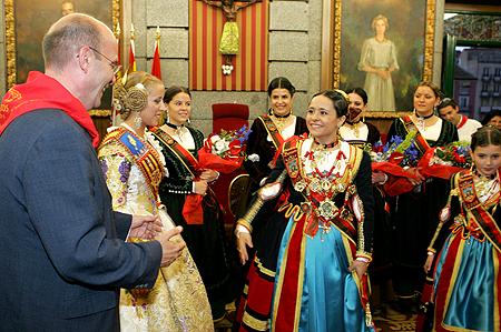 La tarde del viernes 27 de junio la comitiva fallera fue recibida en el Ayuntamiento por la máxima autoridad de Burgos, el alcalde Juan Carlos Aparicio, y otros miembros de la corporación municipal, que aguardaban con ilusión su llegada para comenzar unos de los actos más protocolarios de los Sampedros, la proclamación de sus Reinas y el Pregón.