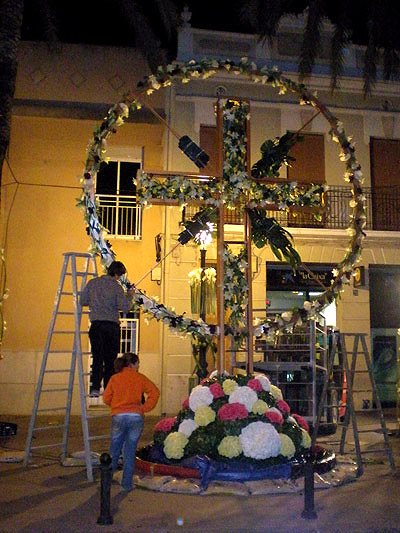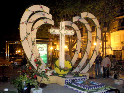 Las cruces comenzaban a aparecer sobre el asfalto de la capital a media tarde del sábado 2. Algunas eran más madrugadoras, como la de Plaza de la Cruz-Los Ángeles, comisión ganadora de la Categoría A el pasado año, que además aprovechó para celebrar toda una serie de eventos festivos.