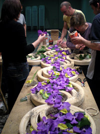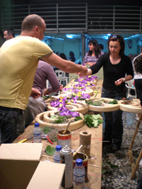 Mientras, en la otra punta de Valencia, los falleros de Zapadores-Vicente Lleó, ganadores de la Categoría B en 2008, ultimaban en su casal la estructura de su cruz para, posteriormente, comenzar a colocar la flor natural.