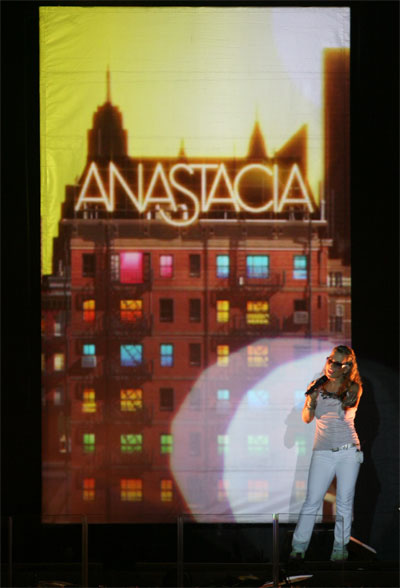La música de la artista norteamericana llegaba hasta los Jardines de Viveros con un escenario en blanco espectacular, tres pantallas de video, proyecciones sincronizadas en todo momento con las canciones interpretadas y sus videos musicales, cinco músicos, dos coristas y dos bailarines que enloquecieron al público femenino. Ya se encargó Anastacia de presentárnoslos....