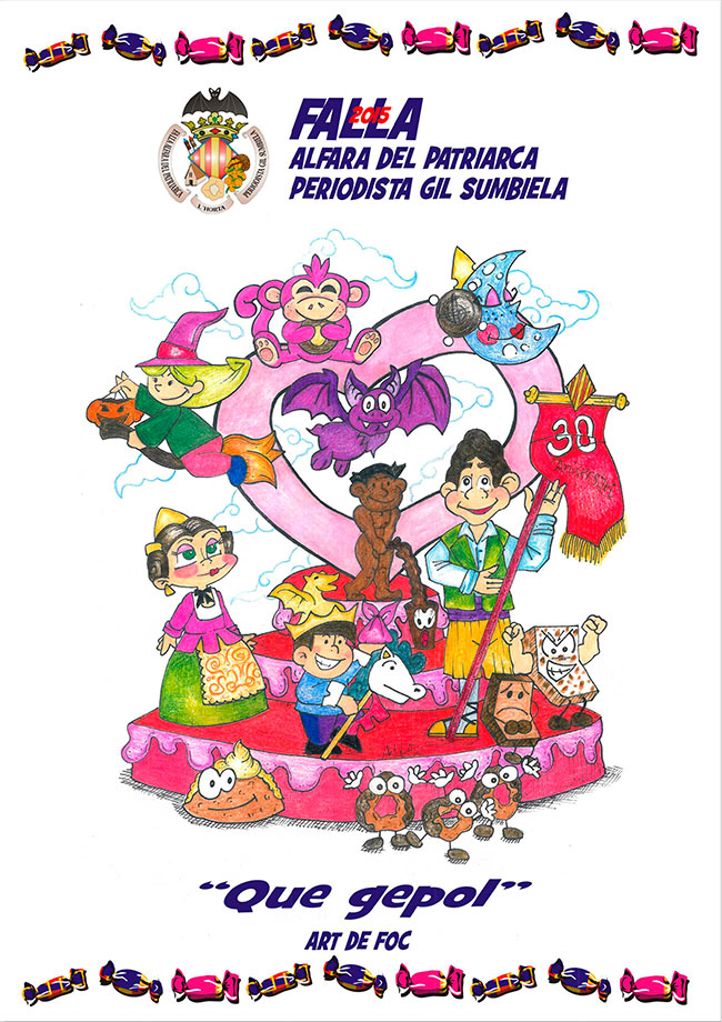 “Este es el tercer ejercicio que apostamos por la profesionalidad de estos artistas que demuestran año tras año su afán de superación. La falla infantil tendrá por lema “Qué gepol” y será responsabilidad exclusiva de Art de Foc. Para la realización de la falla grande se ha contado con la colaboración del diseño de Aureli Domenech i Tono Herrero con la intención de crear un proyecto diferente y atractivo con el cual competiremos en el concurso de fallas experimentales bajo el lema “No pergues el teu lloc”, afirma la comisión.