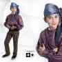 Alexandre Alfonso Flores, presidente infantil de Ripalda-Beneficència-San Ramón, nos muestra el traje que estrenó el día de la presentación. Se trata de un traje en seda negra con un espolín San Rafael de Compañía Valenciana de la Seda en tono crema.