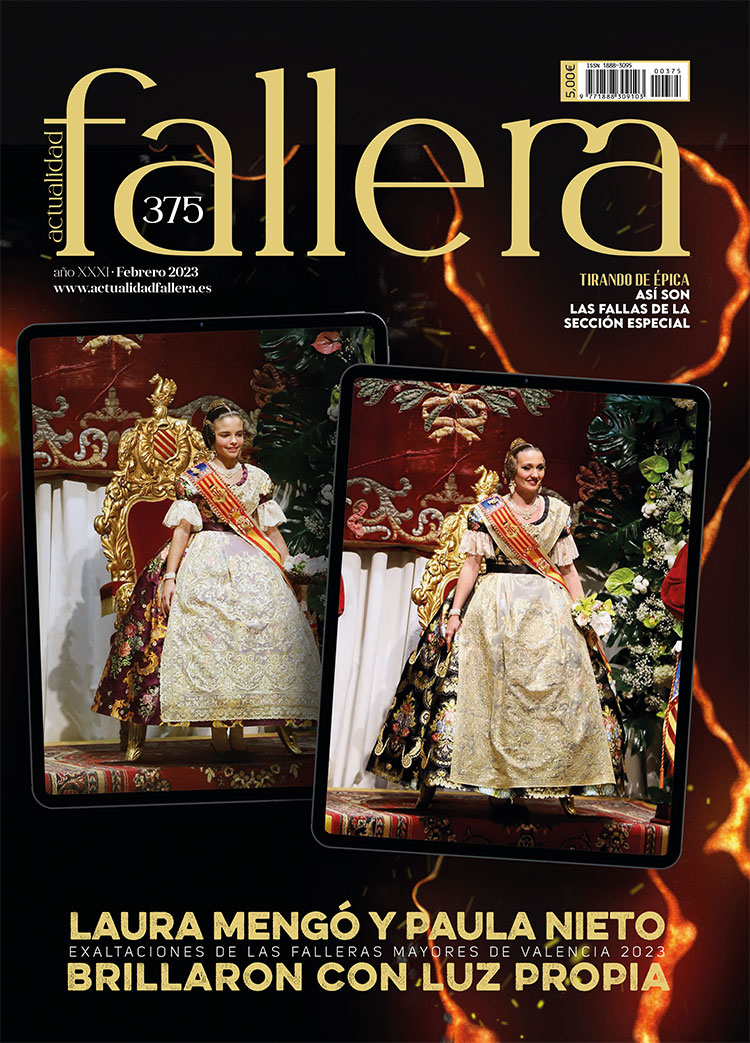 Desde el viernes 3 de febrero podrán encontrar en quioscos y puntos de venta habituales el nuevo número de Actualidad Fallera. Las exaltaciones de Laura Mengó y Paula Nieto como Falleras Mayores de Valencia protagoniza una edición en la que echamos un vistazo a los talleres en los que se elaboran las fallas de la sección Especial, conociendo un poco más de cerca las propuestas de los artistas falleros para la categoría de oro.
