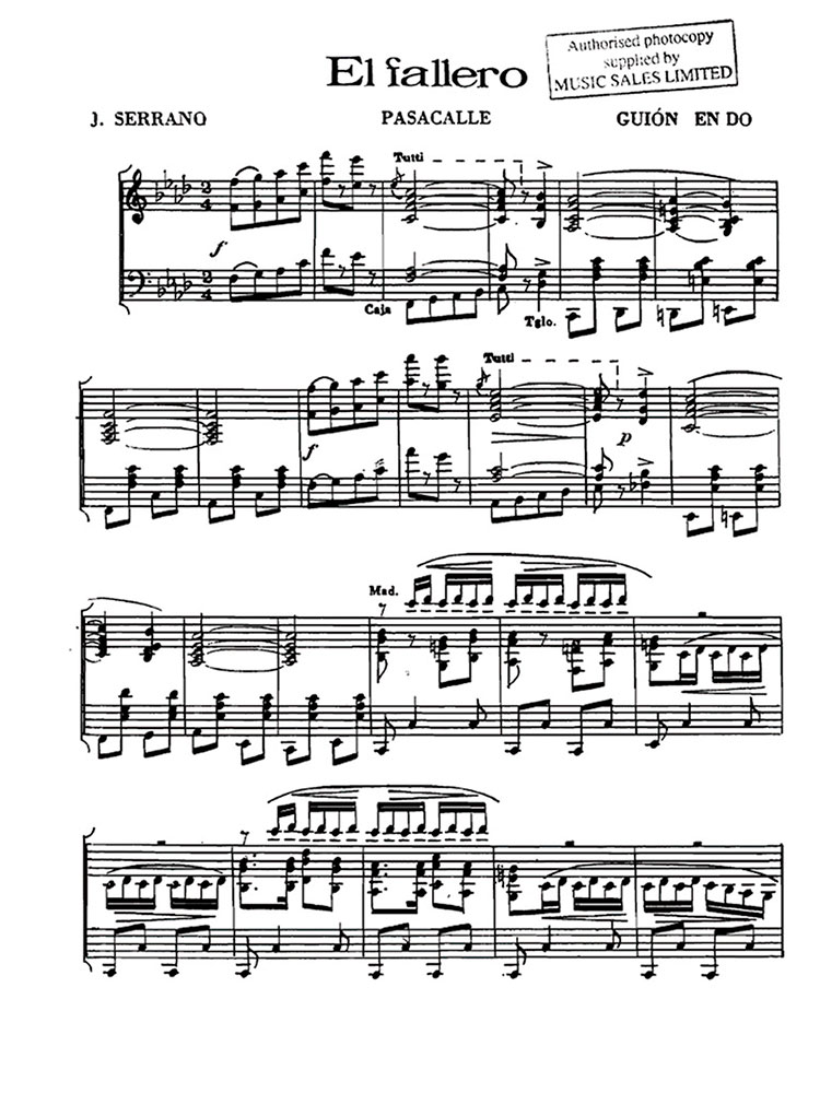 Serrano aceptó y se comprometió a escribir el pasodoble en fecha fija. Llegó marzo de 1929, y cuatro días antes de la entrega aún no lo tenía ni pensado. No obstante, y para no faltar a su palabra, pidió a una copistería que estuviera preparada para imprimir 100 copias de una partitura que aún no existía. Esa noche, tres días antes de acabar el plazo, la empezó y terminó, y al día siguiente se imprimieron las copias, que viajaron desde Madrid (ciudad de residencia de Serrano) hasta Valencia, donde un empleado de los coches cama las repartió. De esta manera, en la tarde del 18 de marzo de 1929 todas las bandas de música de Valencia la tenían y pudieron interpretarla. Así fue como se estrenaba en El Fallero, constituyendo un éxito artístico y un enorme legado. Posteriormente, en 1931, el poeta Maximiliano Thous Orts, adaptaba una letra al ya popularísimo pasodoble.