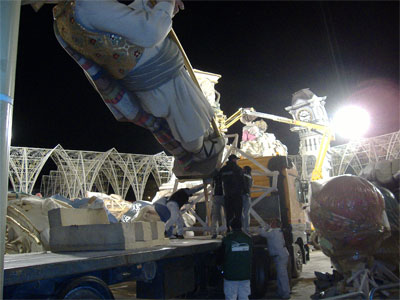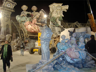 Mientras se bajaba una de las piezas, nosotros continuábamos cambiando impresiones con el artista que nos comentaba que todavía faltaba por llegar hoy un camión y que el resto llegaría a partir de mañana. "Falta mucho por traer, esto es una barbaridad de falla lo que vamos a plantar este año aquí. Hay mucha más falla que el año pasado".