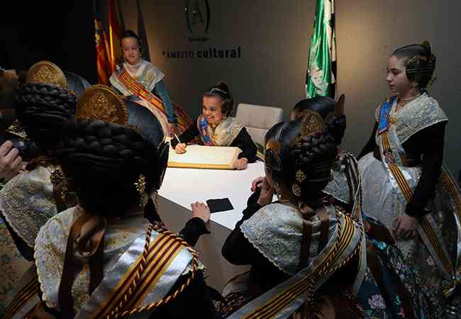 El Corte Inglés, patrocinador de la Junta Central Fallera, ha obsequiado a las Falleras Mayores y a las integrantes de las Cortes de Honor, dos magníficos complementos, un bolso de seda y piel, y un pañuelo de seda confeccionados por el indumentarista Álvaro Moliner, cuyas instalaciones del centro comercial visitarían las falleras mayores y sus cortes.