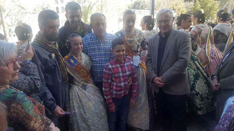 En el conjunto de asistentes al balcón, donde no faltaron comisiones falleras y juntas locales, también se pudo ver a componentes de la asociación Valencia Acoge, que cumple 29 años, y a Isabel Roca y Vicent Llorach, Miss y Mr. Ciudad de Valencia.