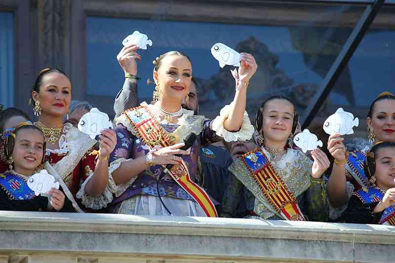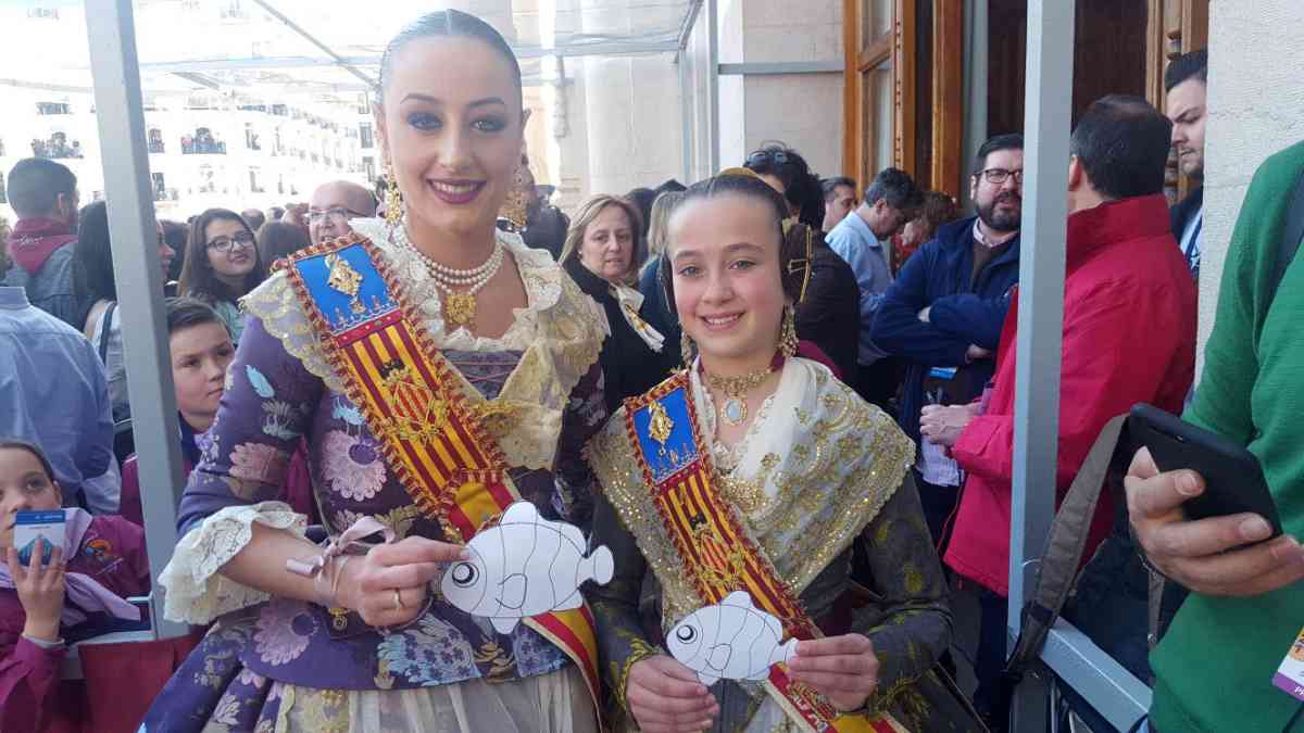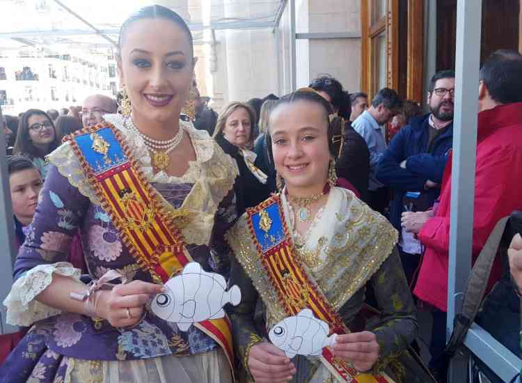 Las máximas representantes de la fiesta fallera se unían al dolor de la familia del niño Gabriel Cruz a través de unos pececitos blancos como señal y muestra de apoyo.