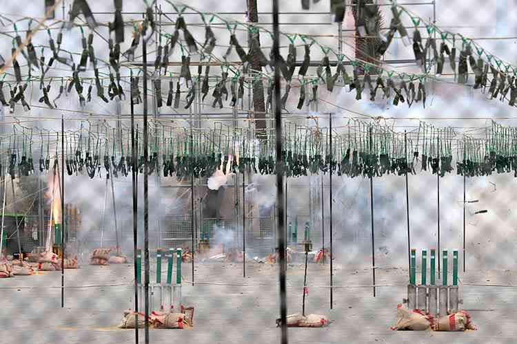 Colocado el casco verde por el Algarrobo, las FFMM de Valencia junto a dos y dos integrantes de sus respectivas cortes, daban la orden de inicio a un disparo de 150 kilos de materia reglamentada, y en cuya disposición de corte tradicional, destacaría la incorporación de dos truenos de diferente calibre en cada una de las líneas, cuya explosión sería a dos alturas generando un efecto sonoro dispar, entremezclando una visión por momentos en entre una mascletà y una cordà.