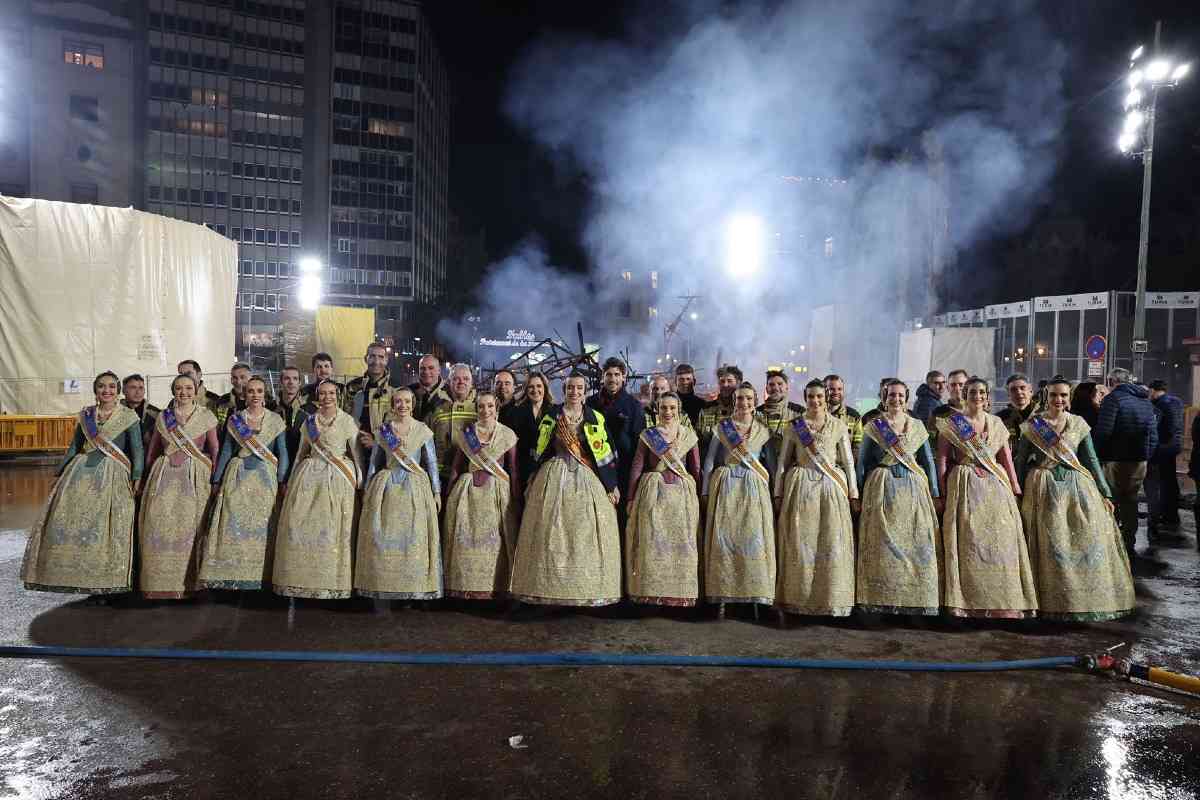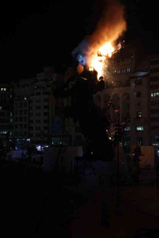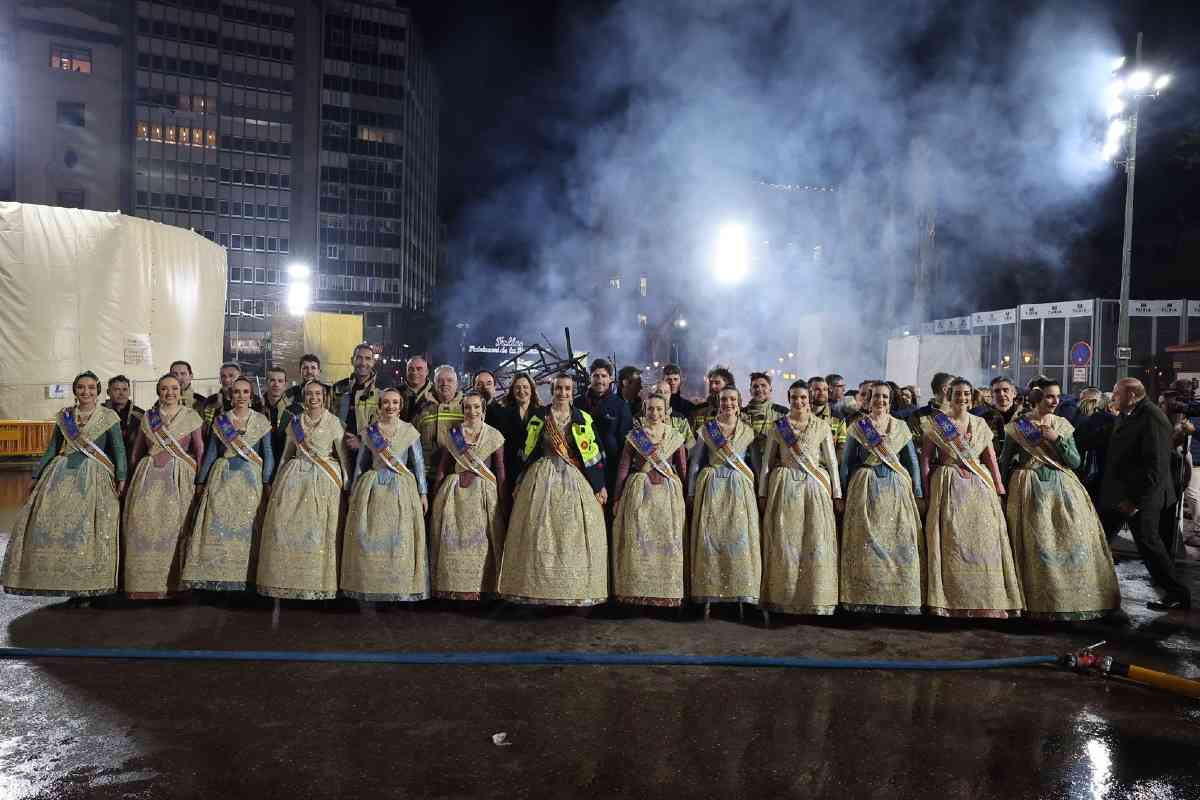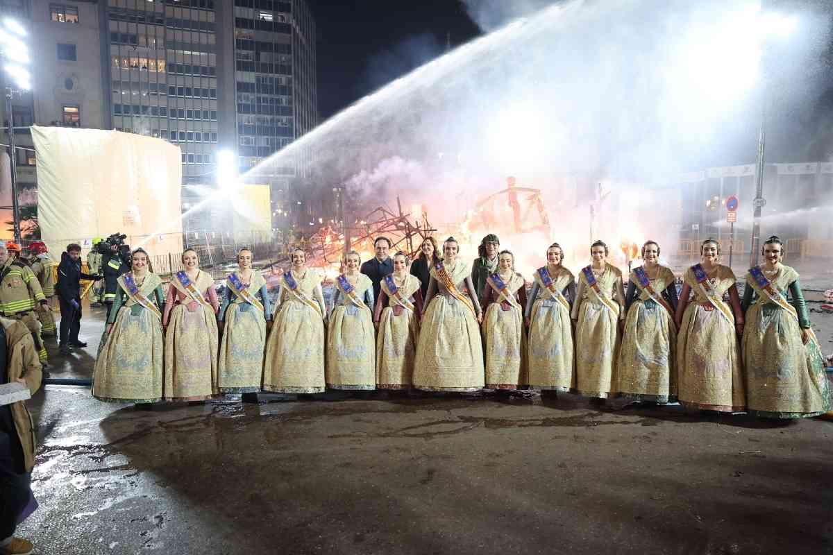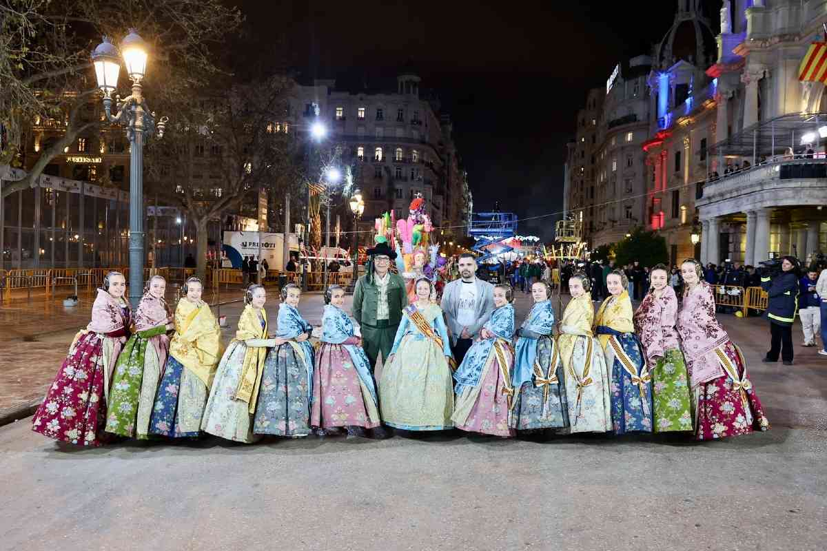 La última parada de la noche, como dicta la tradición, fue la plaza del Ayuntamiento. La Fallera Mayor de Valencia, Carmen Prades, y su Corte de Honor, contemplaron la cremà de la falla municipal, “Hope”, firmada por Alejandro Santaeulalia y Vicente Llácer. El enorme Chaplin desaparecía bajo las llamas simbolizando la renovación de la fiesta y dando la bienvenida al ejercicio 2027.