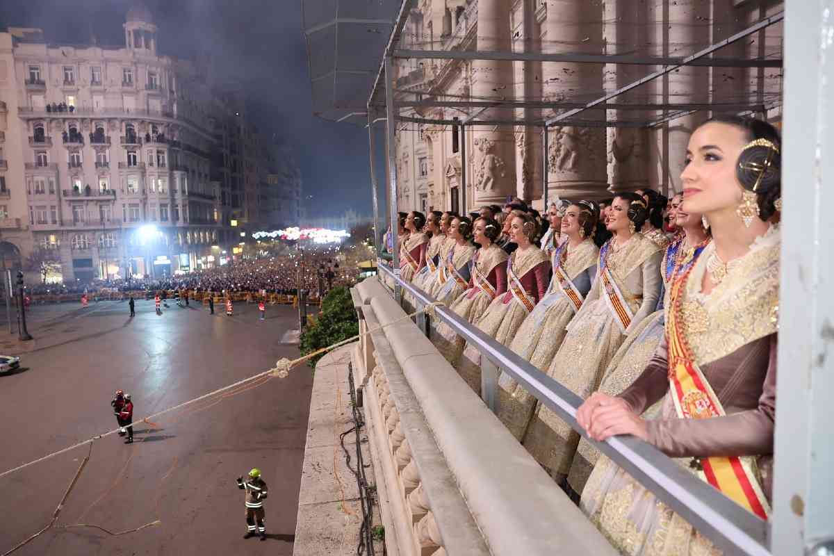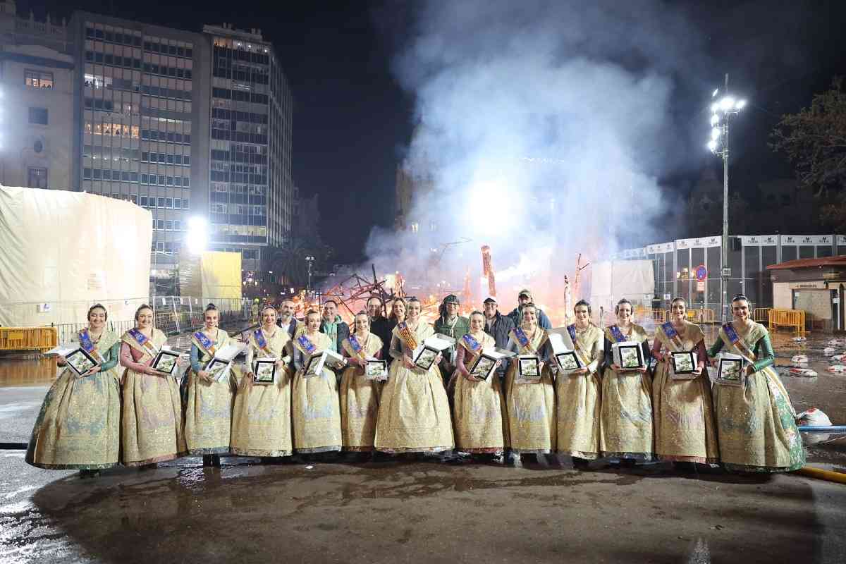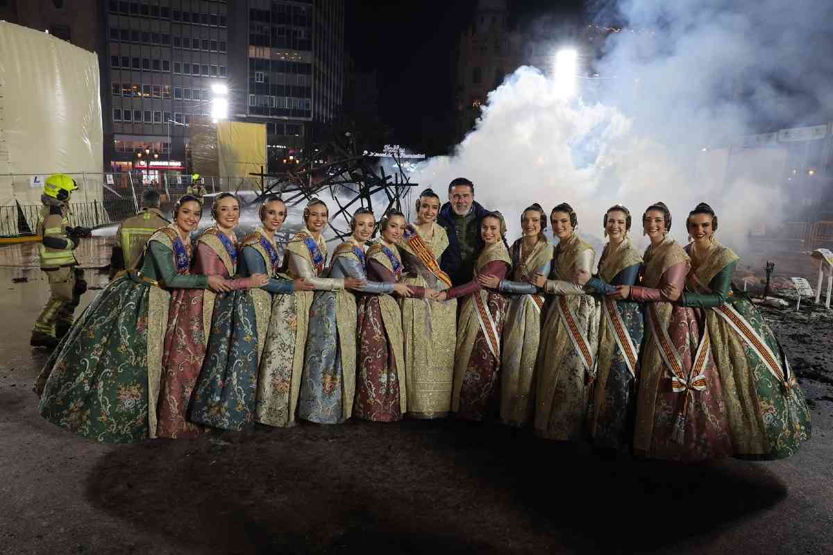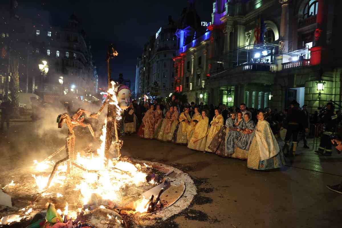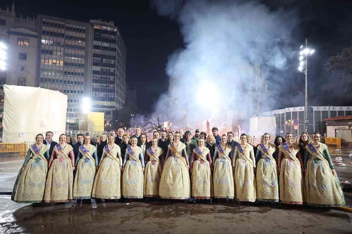 La última parada de la noche, como dicta la tradición, fue la plaza del Ayuntamiento. La Fallera Mayor de Valencia, Carmen Prades, y su Corte de Honor, contemplaron la cremà de la falla municipal, “Hope”, firmada por Alejandro Santaeulalia y Vicente Llácer. El enorme Chaplin desaparecía bajo las llamas simbolizando la renovación de la fiesta y dando la bienvenida al ejercicio 2027.