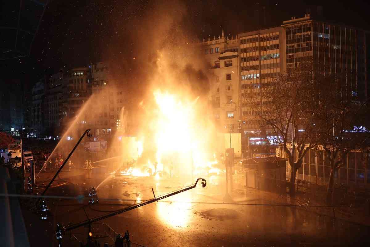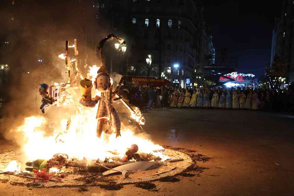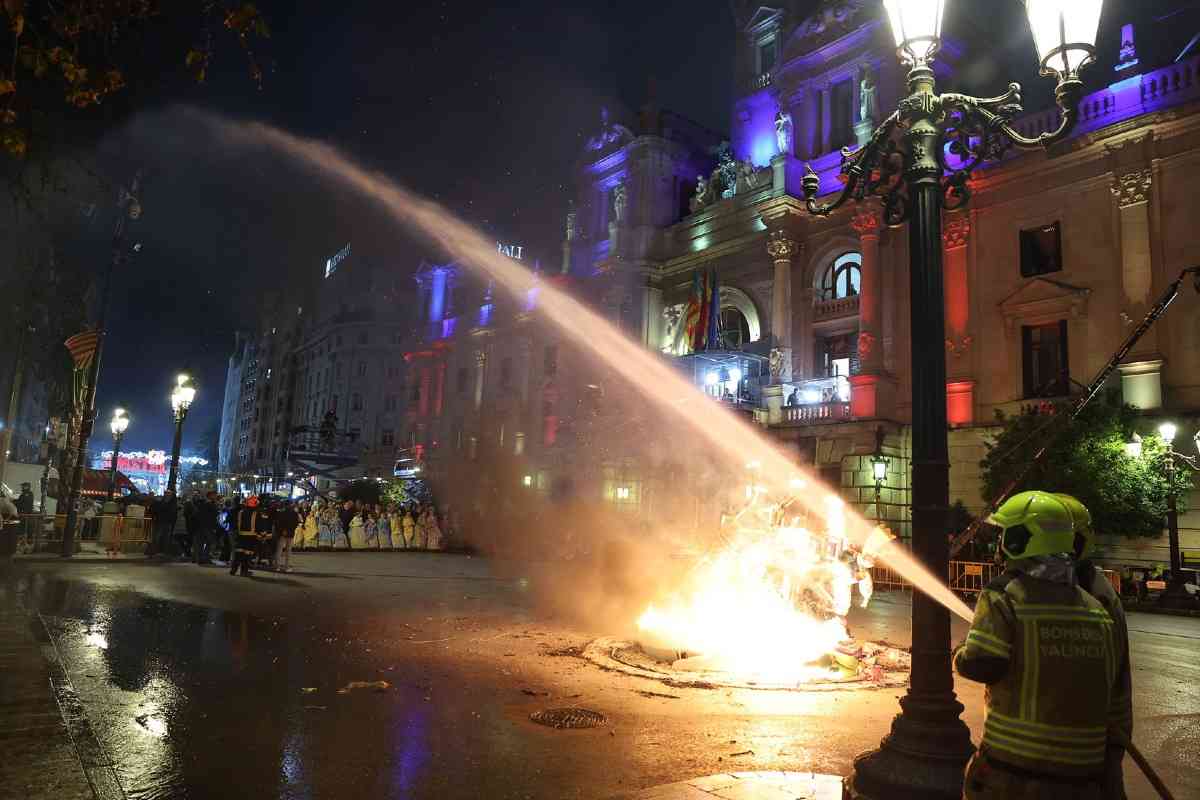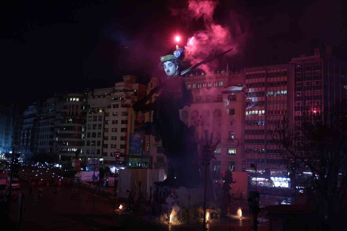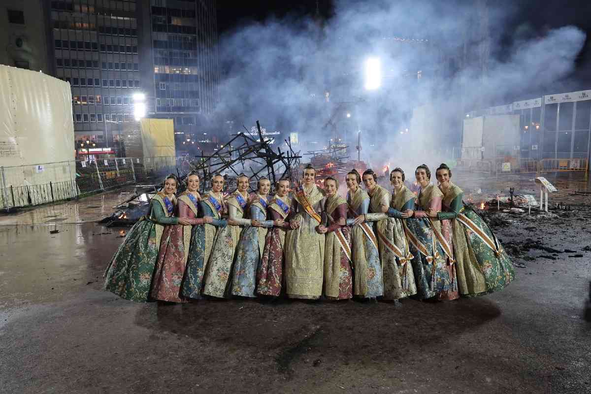 La última parada de la noche, como dicta la tradición, fue la plaza del Ayuntamiento. La Fallera Mayor de Valencia, Carmen Prades, y su Corte de Honor, contemplaron la cremà de la falla municipal, “Hope”, firmada por Alejandro Santaeulalia y Vicente Llácer. El enorme Chaplin desaparecía bajo las llamas simbolizando la renovación de la fiesta y dando la bienvenida al ejercicio 2027.