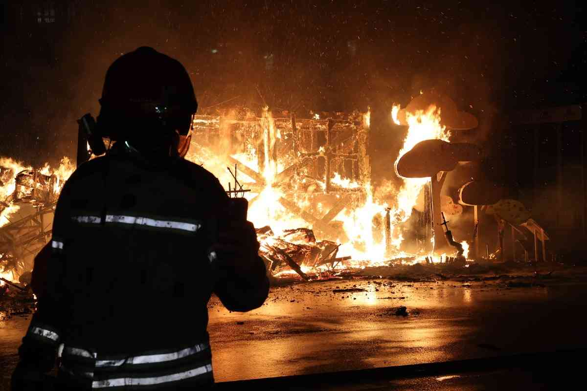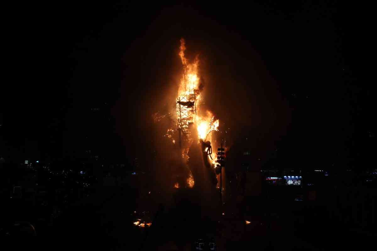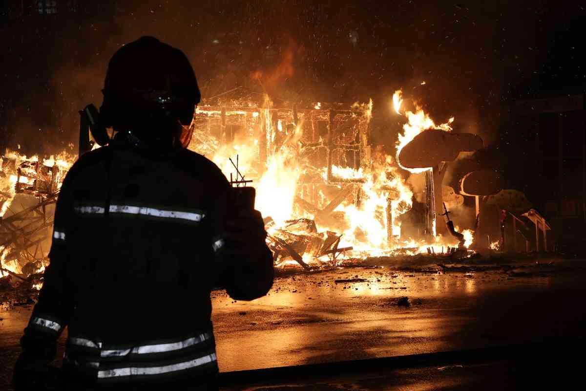 A las 22:00 horas, el fuego se extendió a las fallas grandes de la capital. El mapa del fuego tuvo su punto álgido en el sector de Especial, donde ardió la falla campeona de 2026, Convento Jerusalén, un imponente proyecto de David Sánchez Llongo.