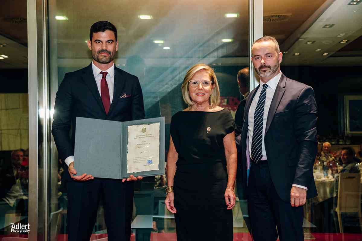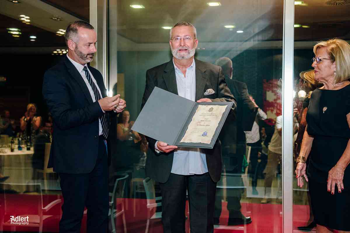 El maestro mayor del Gremio, Fran Tochena, hizo entrega del galardón, creación original de la firma Art Antic, una aguja de estilo barroco y ‘muy valenciano’ de oro blanco con su color natural, grabada a mano con el sello del Gremio en el centro y con zafiros y diamantes en talla rosa en la que su creador, José Alabadí homenajea la indumentaria tradicional en la pieza.