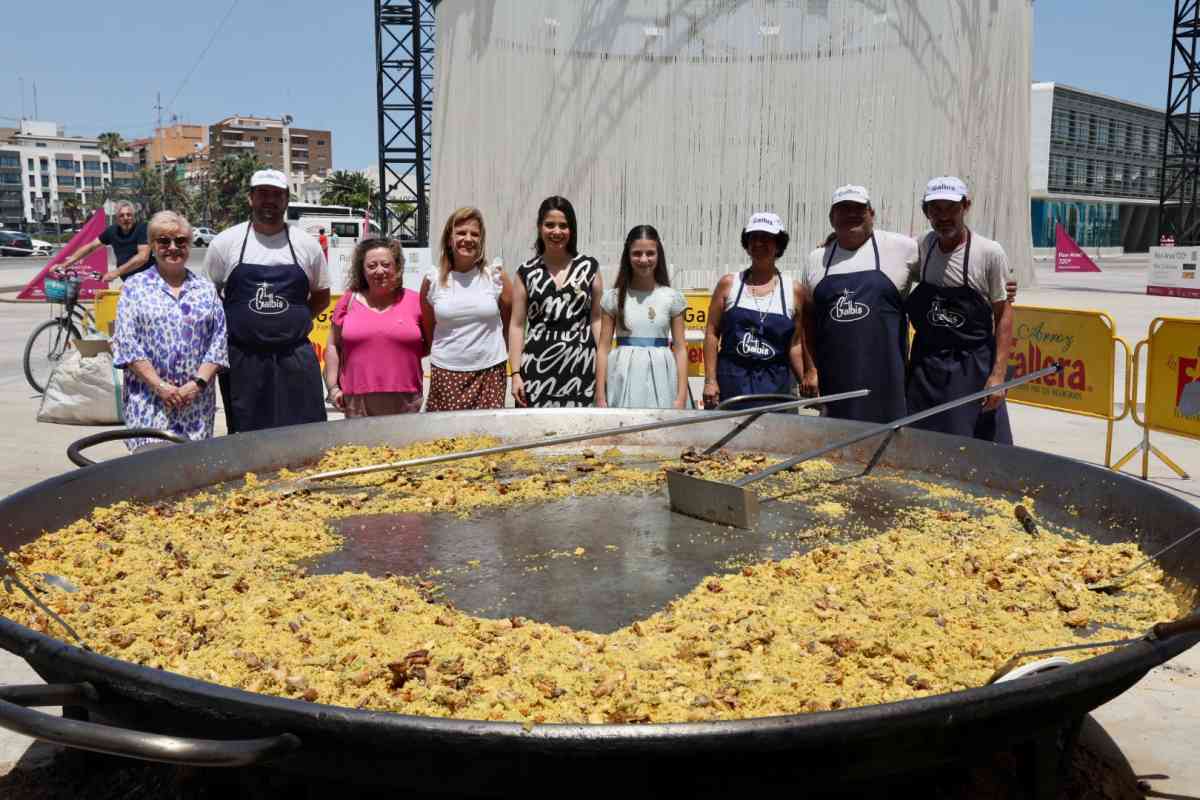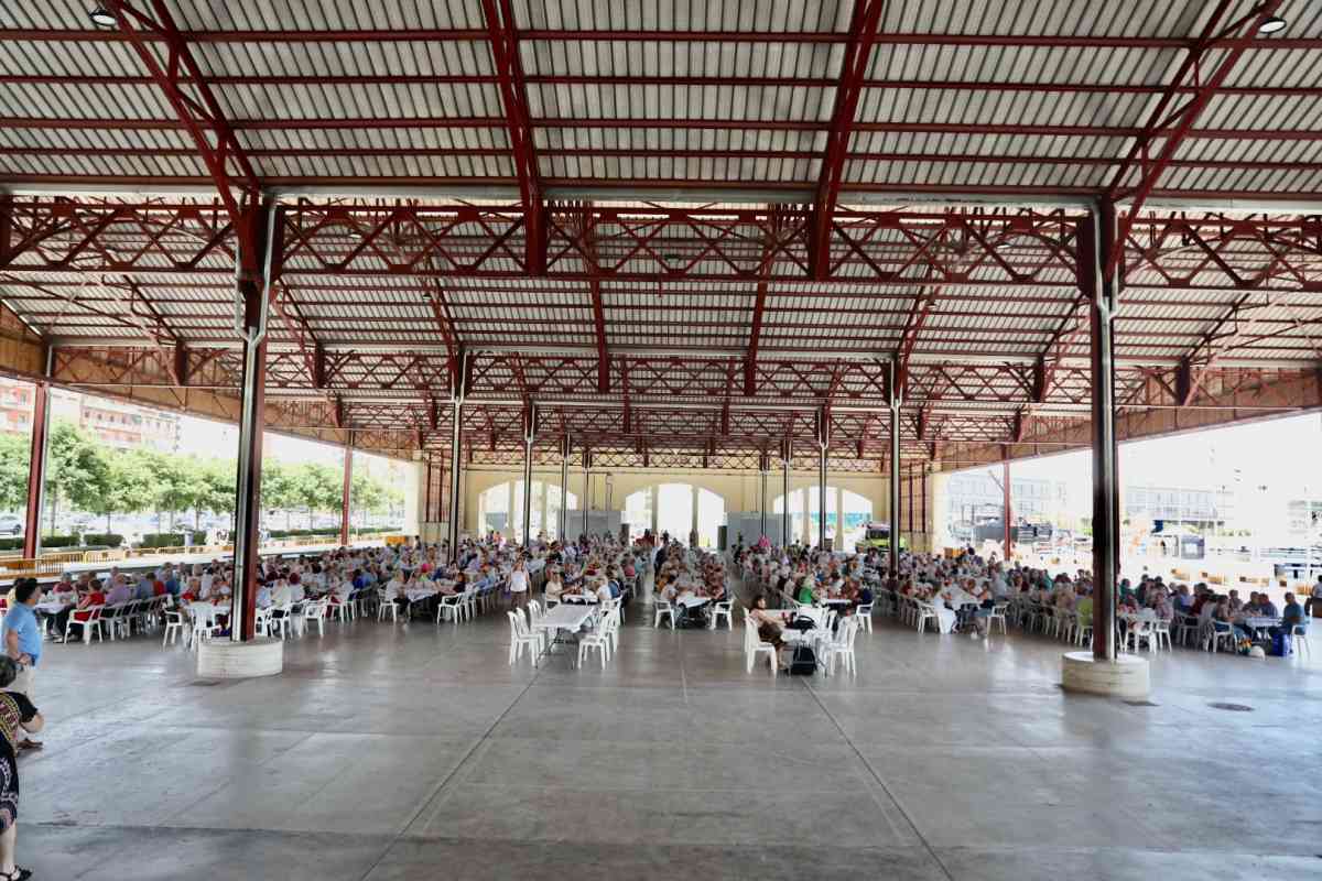 Las Falleras Mayores de Valencia, Nerea López y Carmen Martín, han participado este lunes a mediodía en la paella ofrecida a los socios de los Centros Municipales de Actividades para Personas Mayores de la ciudad, celebrada en el Tinglado N.º 2 de La Marina de Valencia.