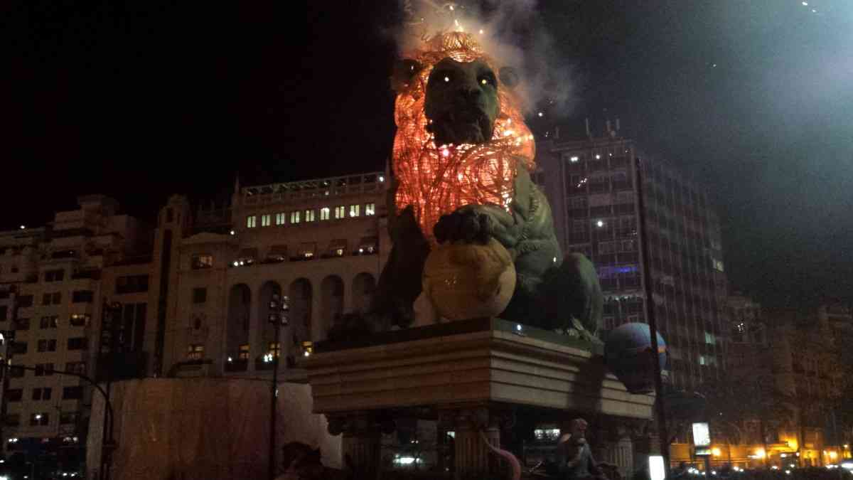 El viento estuvo muy presente durante la cremà de la Falla Oficial de la Plaza del Ayuntamiento.