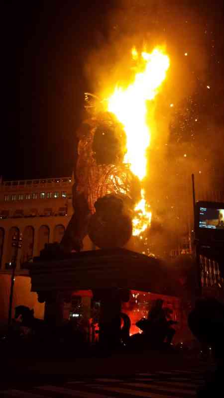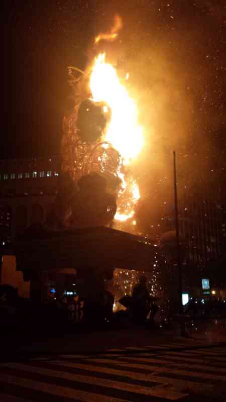 Cremà de la Falla Oficial de la Plaza del Ayuntamiento obra de Manolo García a cargo de la pirotecnia Valenciana de Llanera de Ranes.